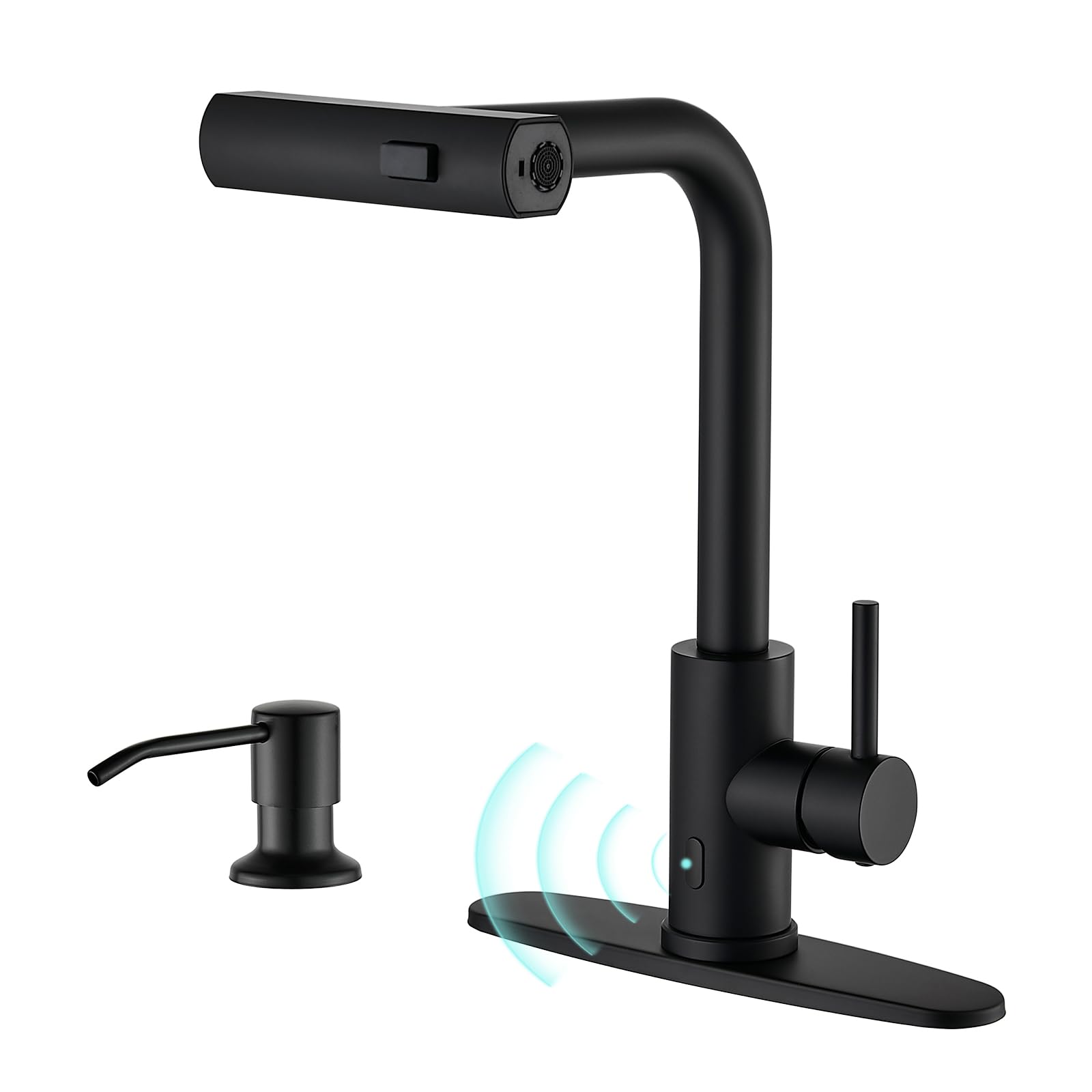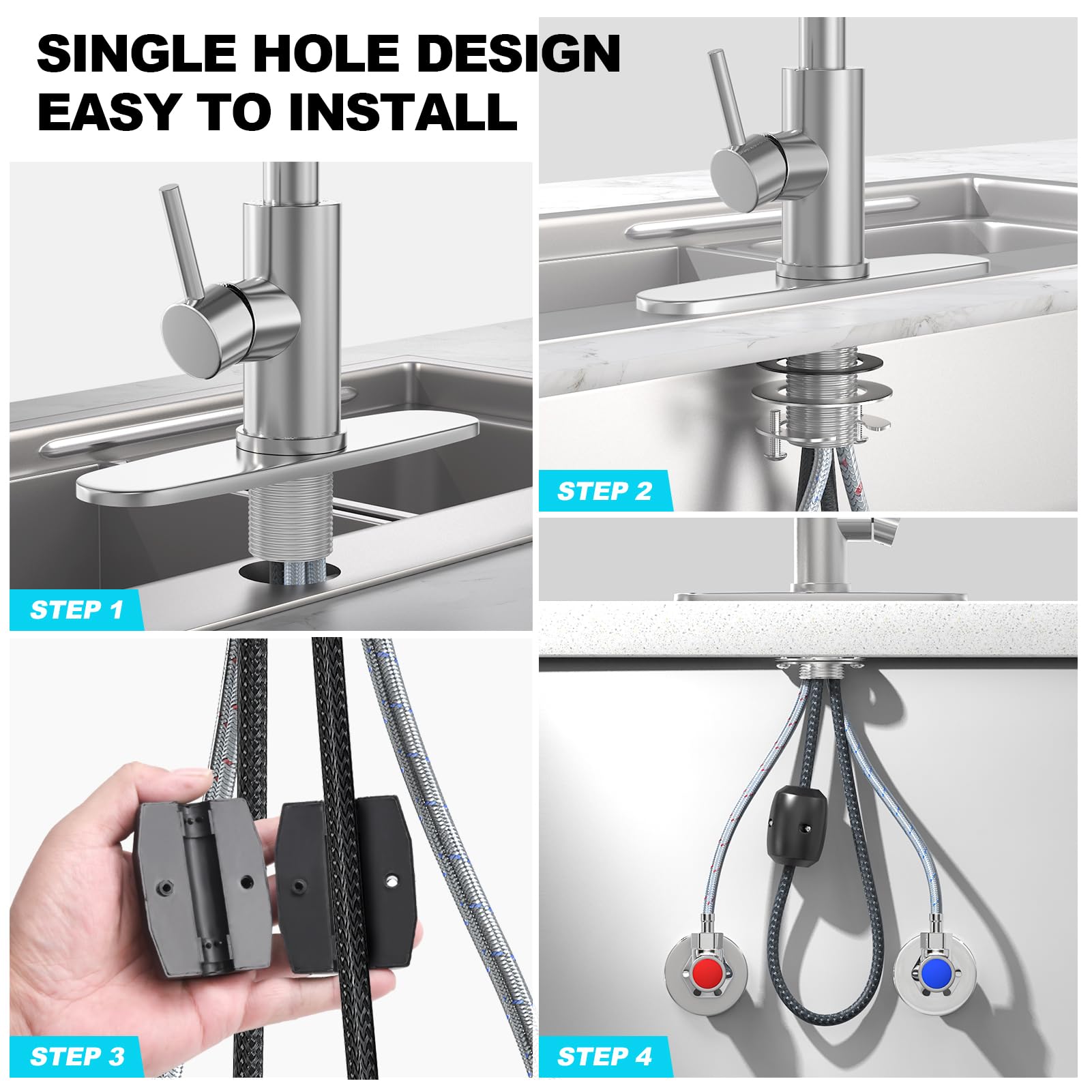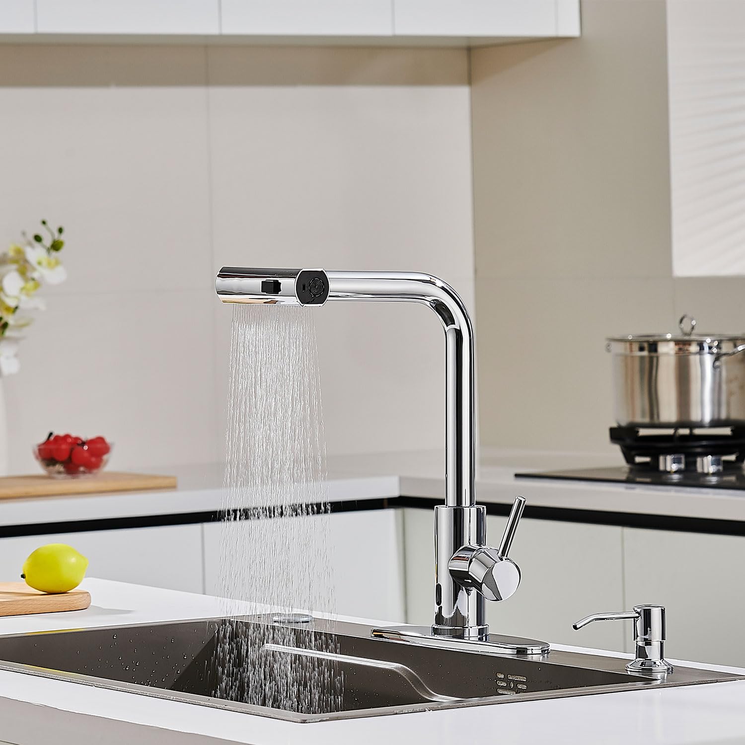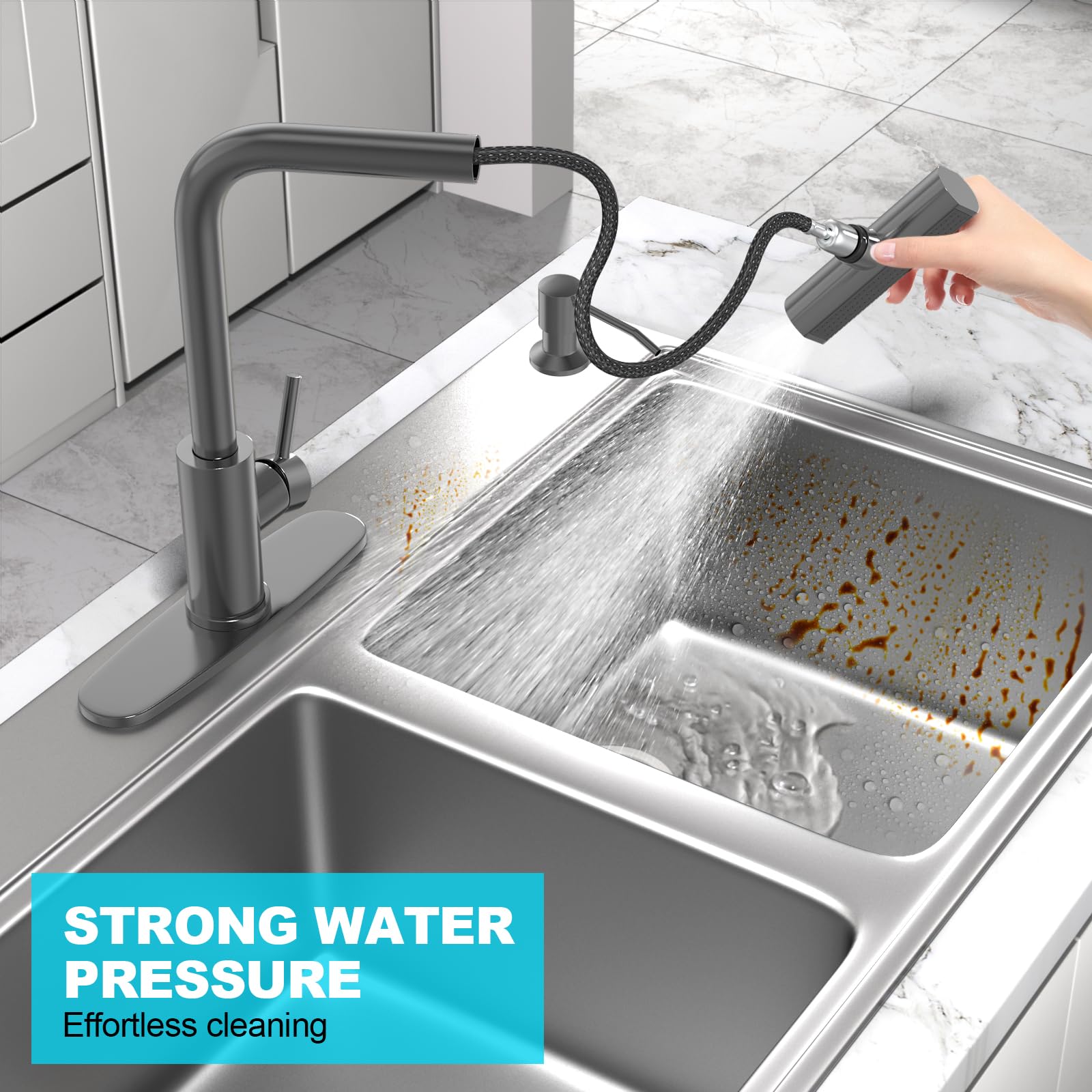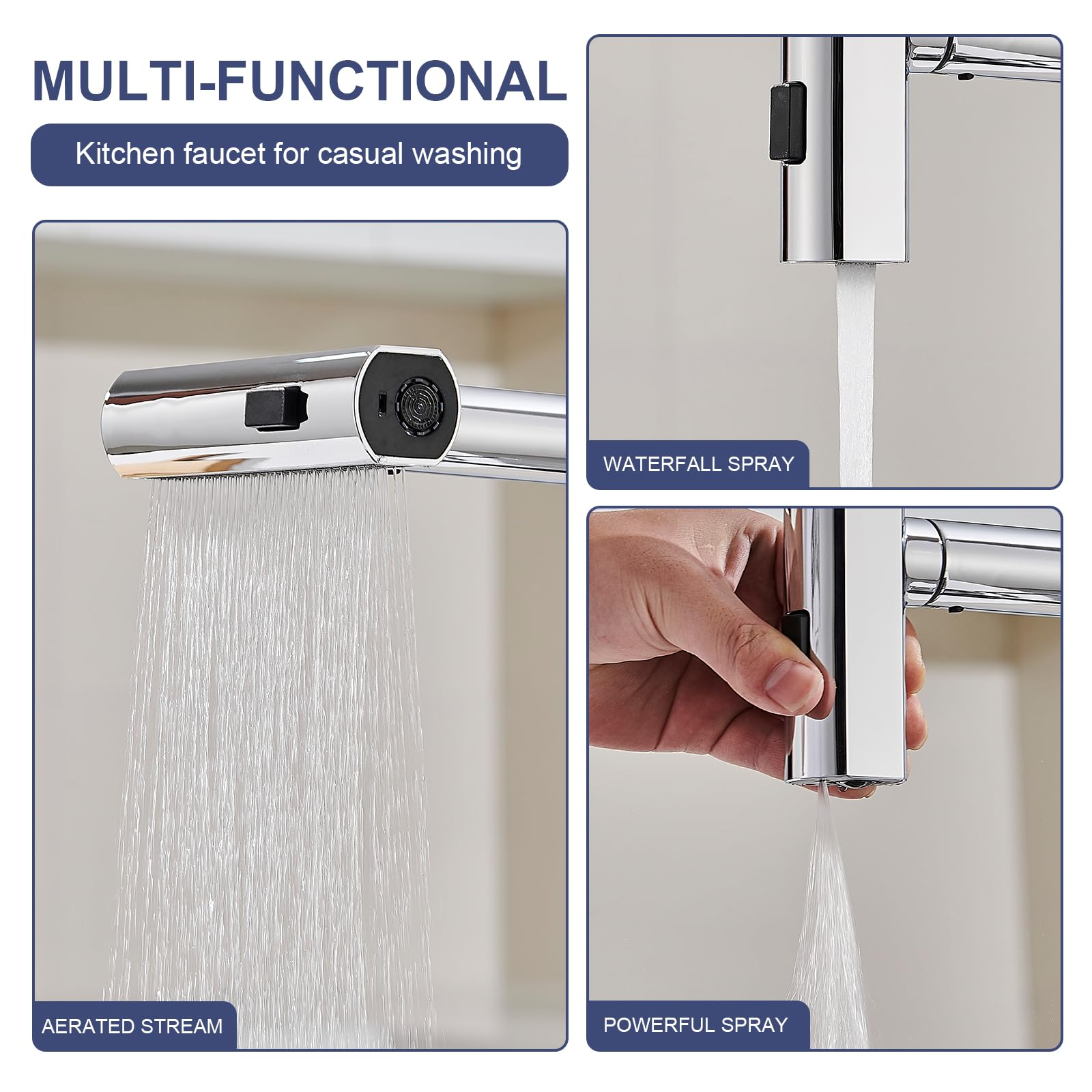 Brushed Nickel Kitchen Faucets with Pull Down Sprayer & Soap Dispenser, Single Hole & Handle, Pull Out Tap, Waterfall Stainless Steel Sink Faucet for Farmhouse Camper Laundry Rv Bar