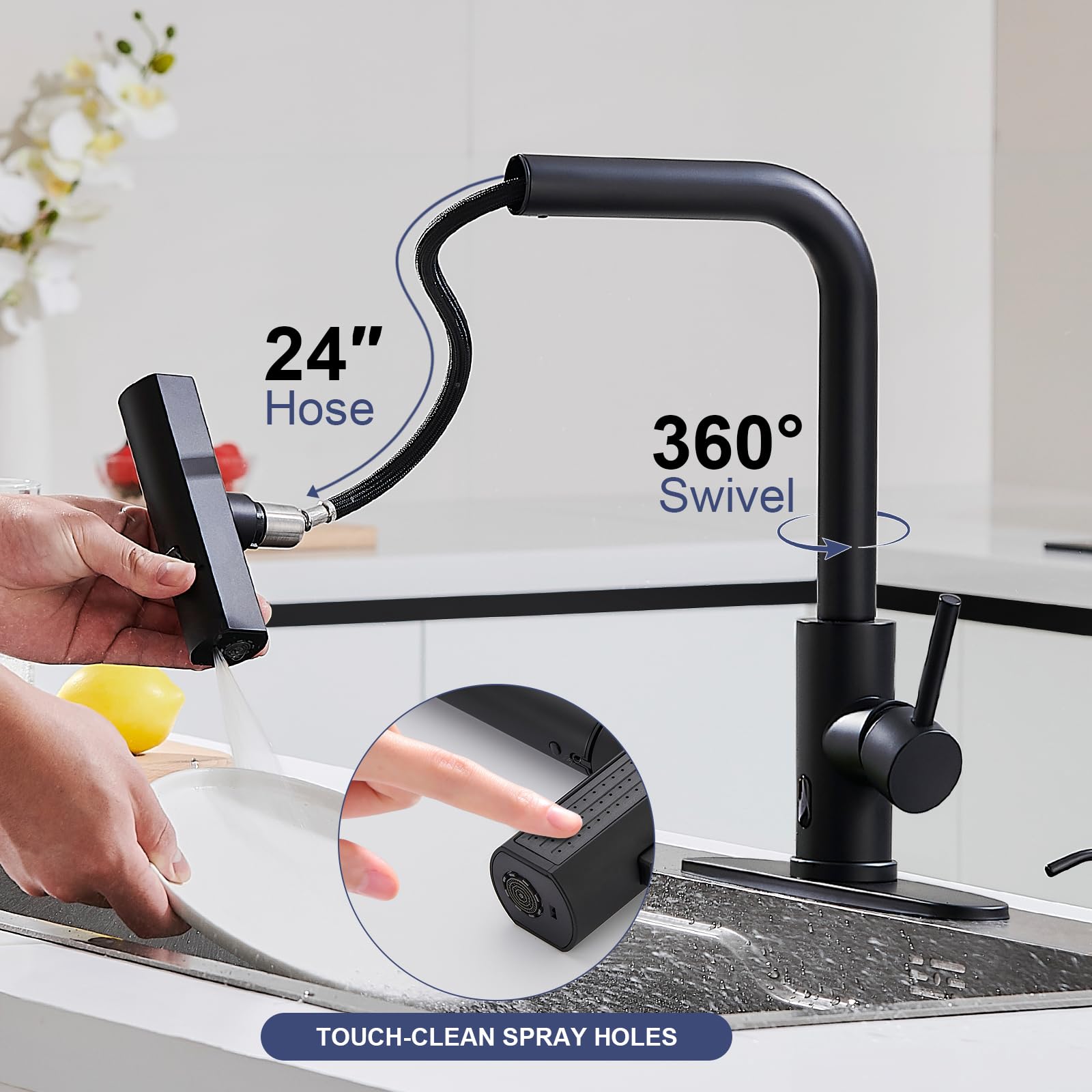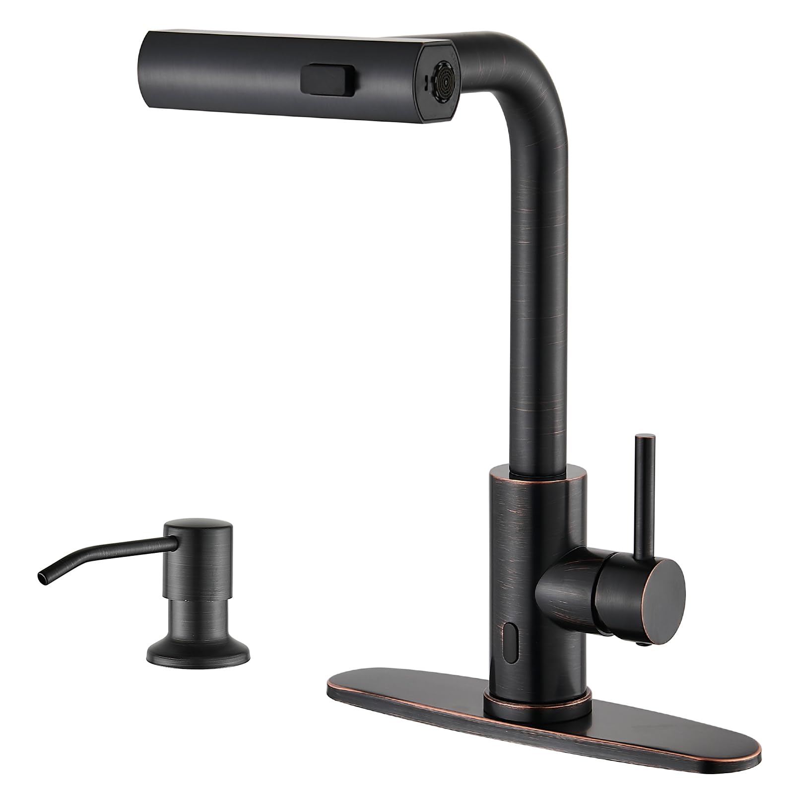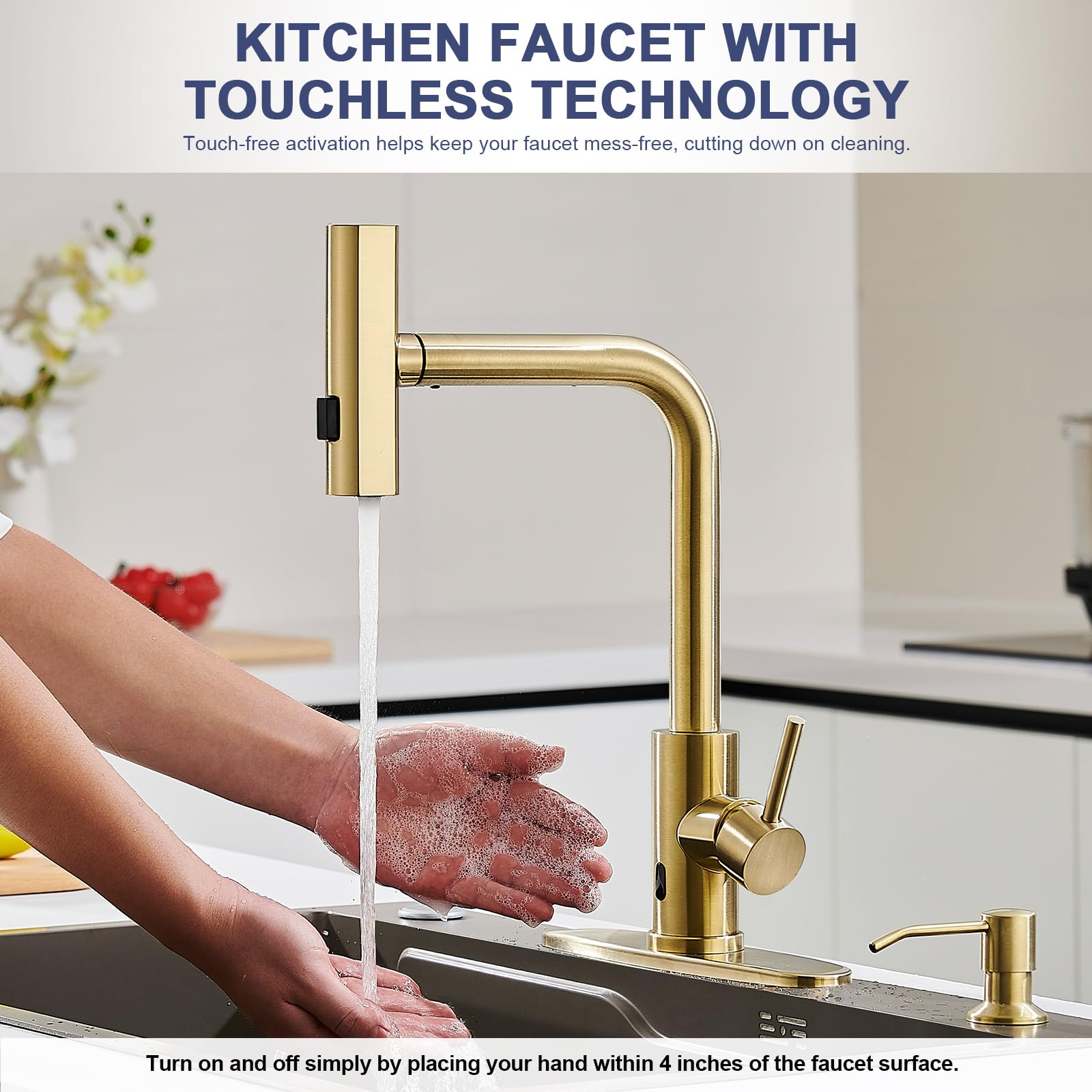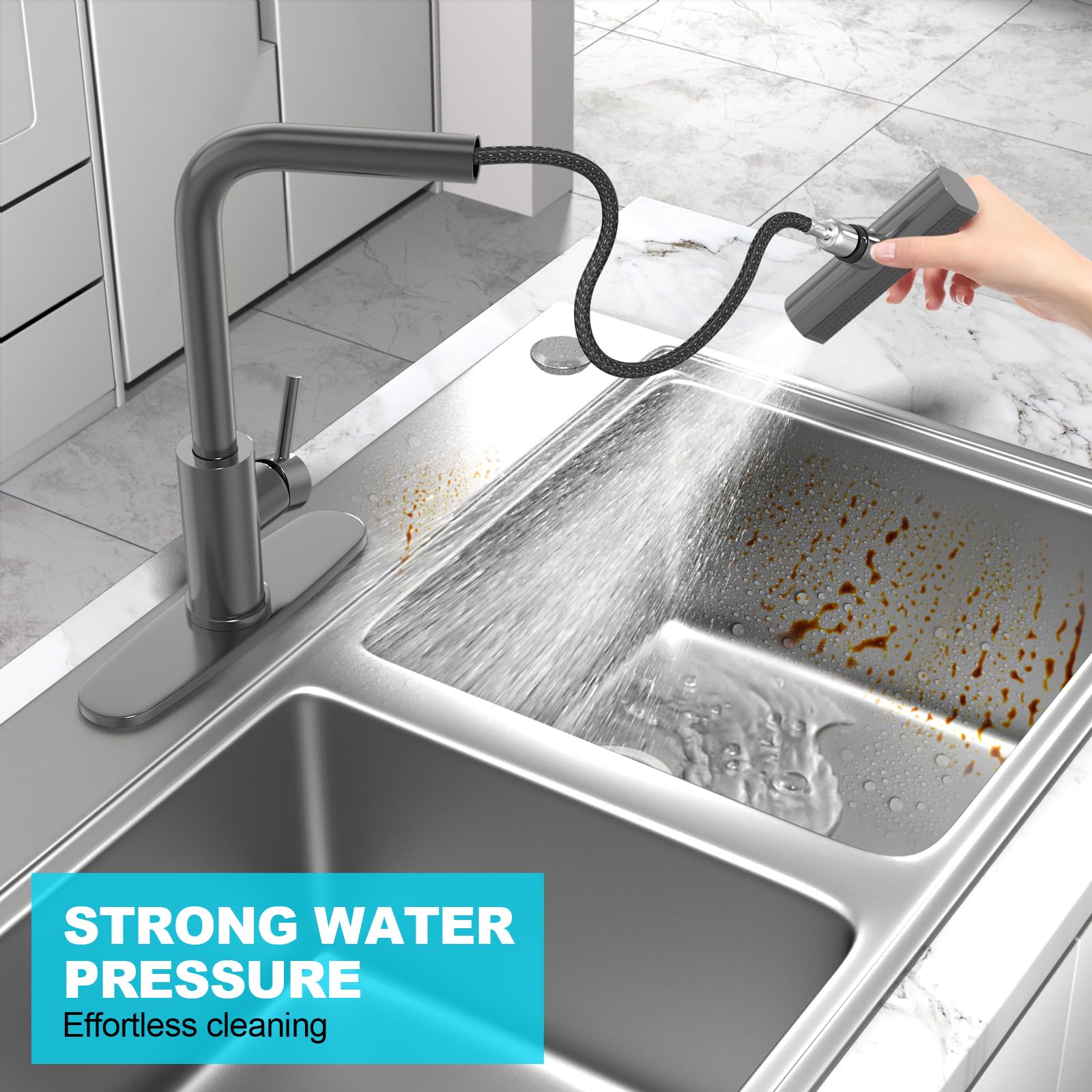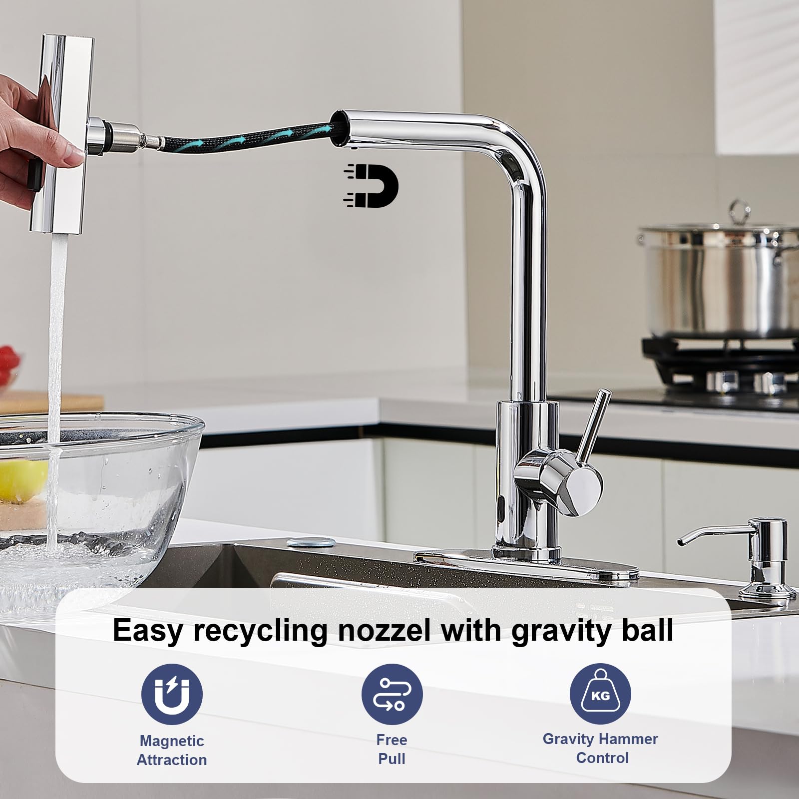 Brushed Nickel Kitchen Faucets with Pull Down Sprayer & Soap Dispenser, Single Hole & Handle, Pull Out Tap, Waterfall Stainless Steel Sink Faucet for Farmhouse Camper Laundry Rv Bar