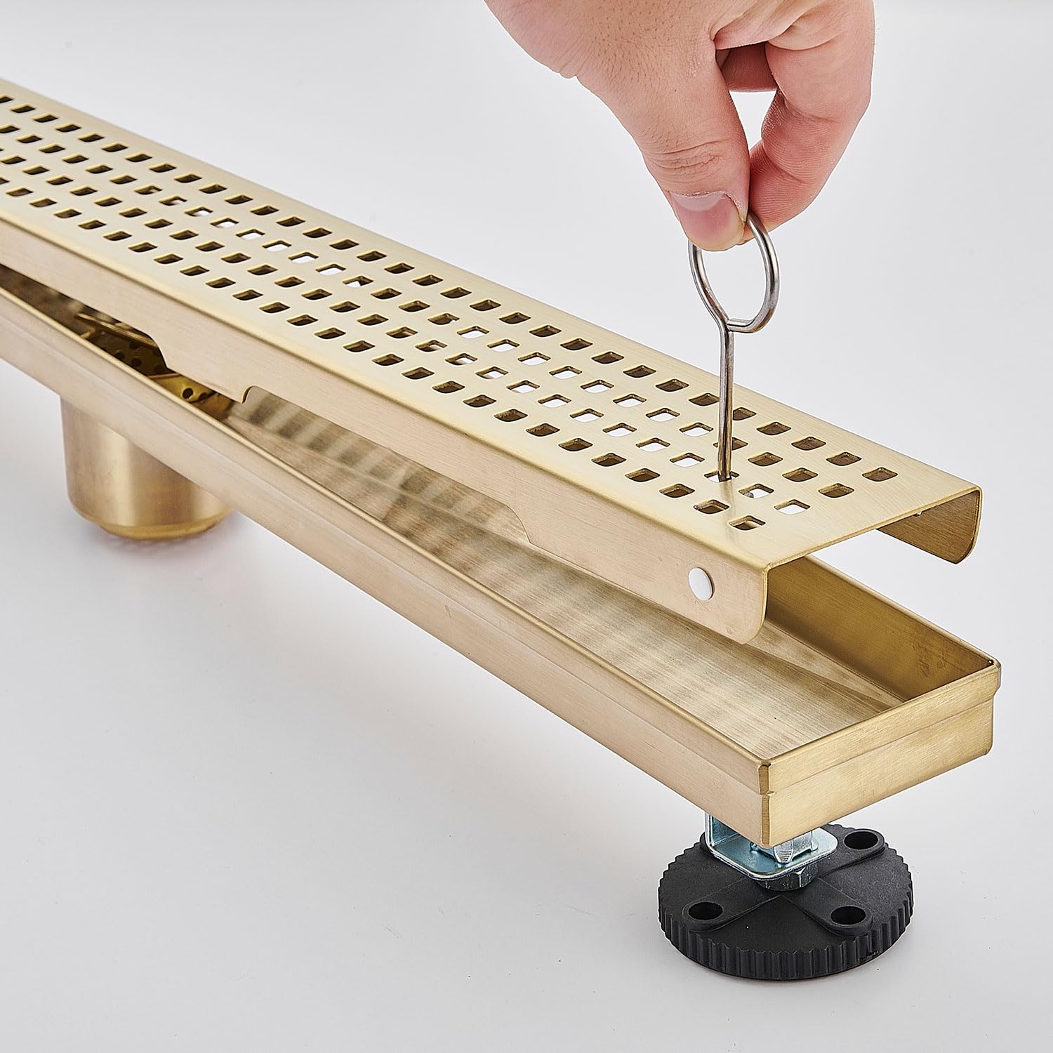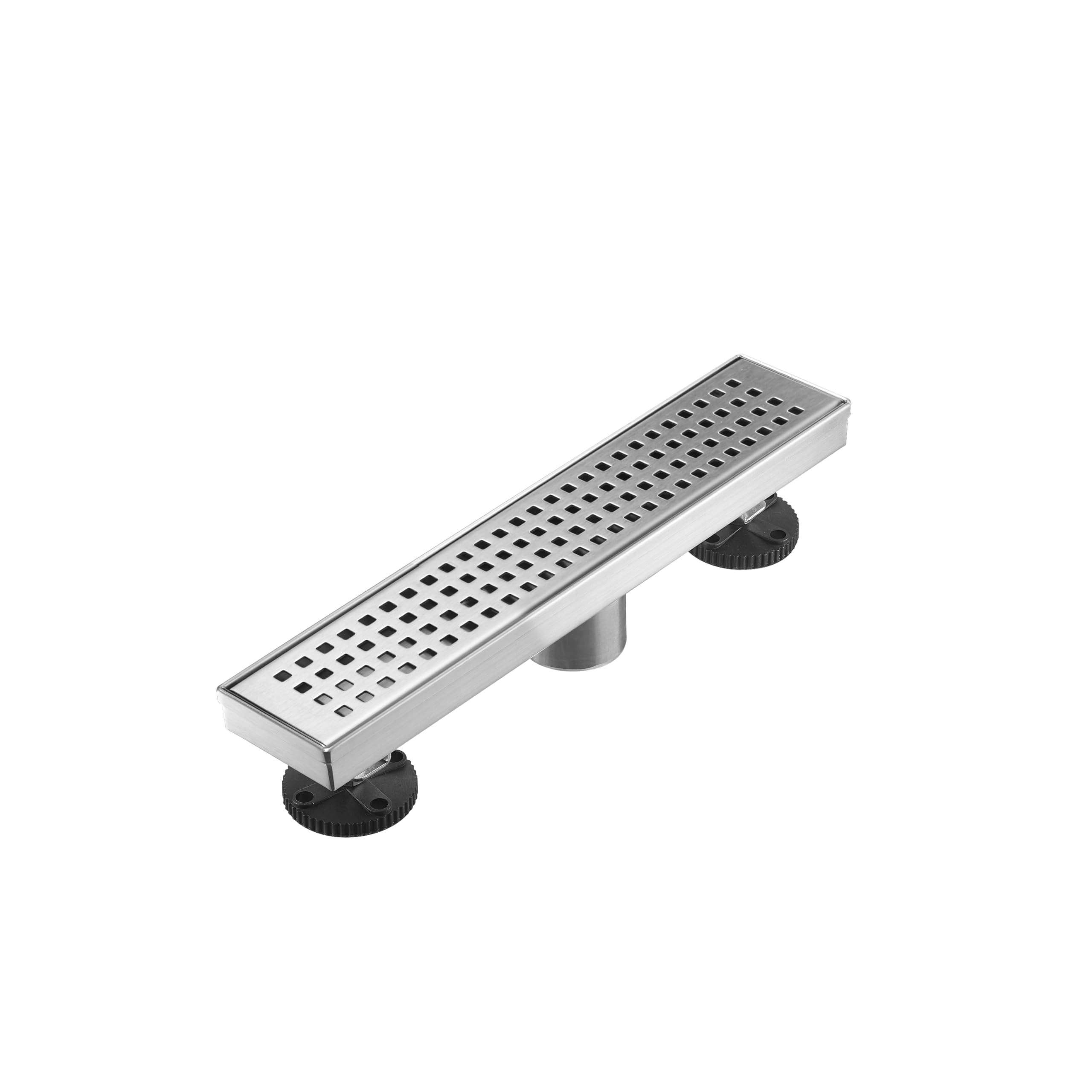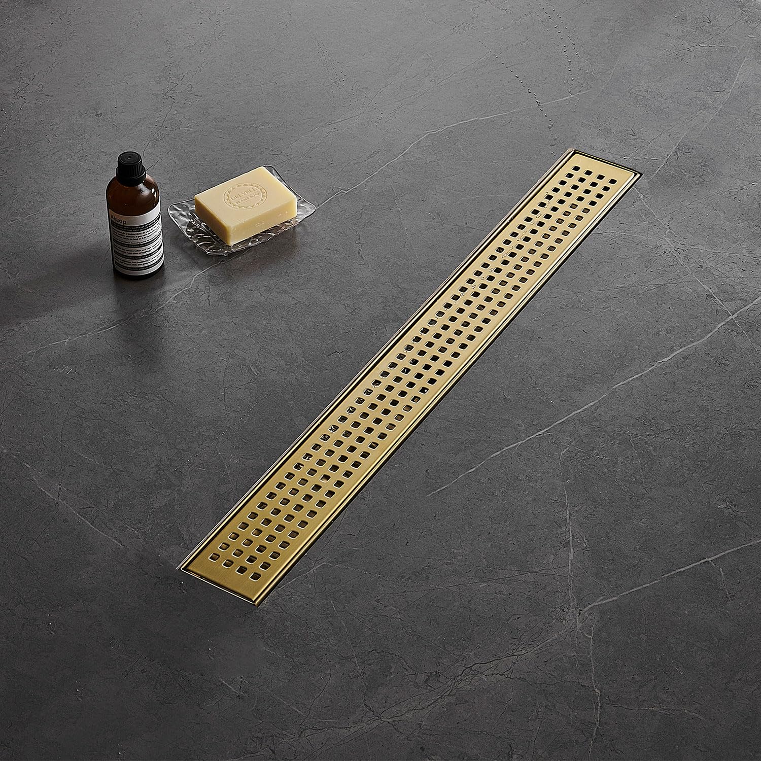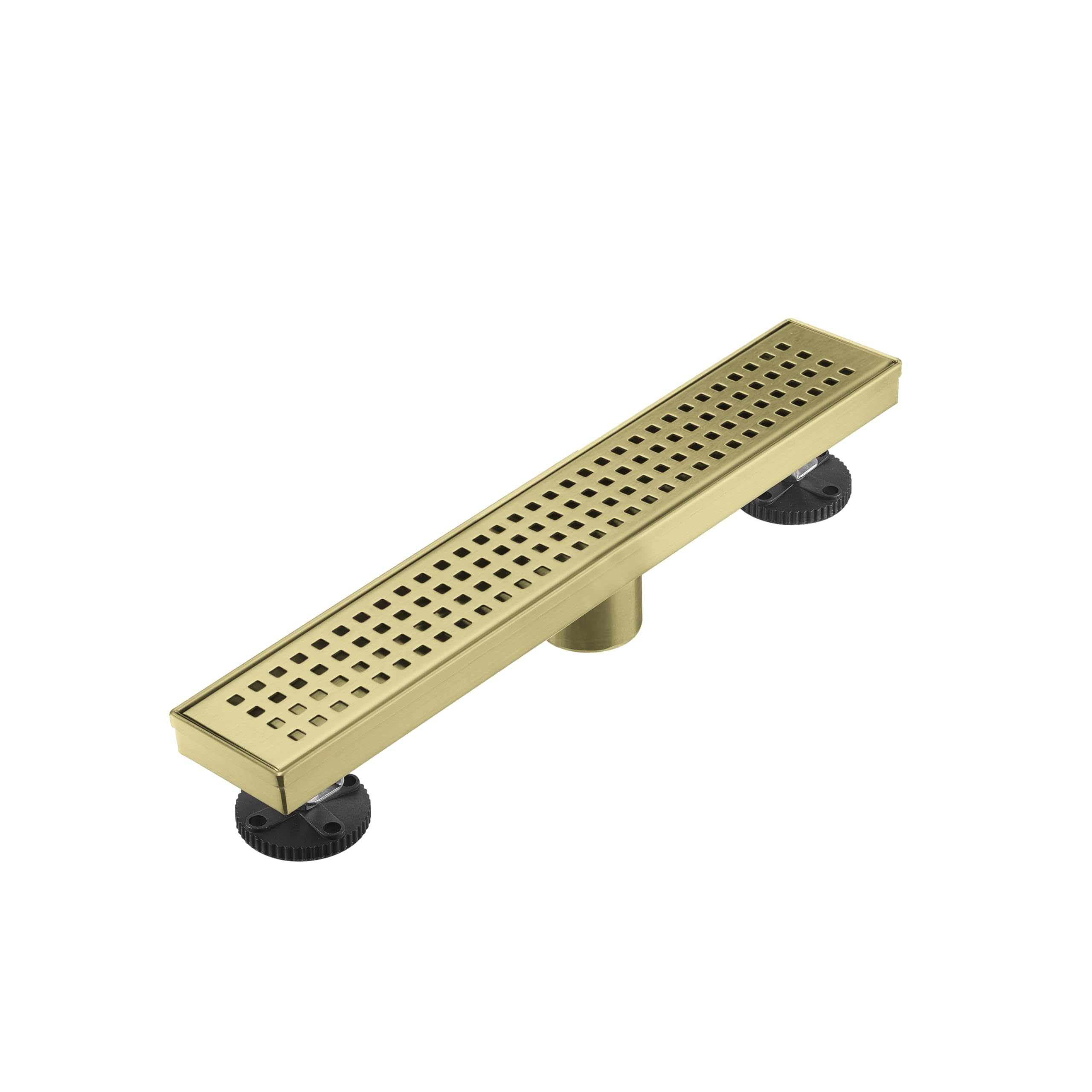 Linear Shower Floor Drain, Brushed Gold 12 Inch 304 Stainless Steel Bathroom Drains Kit, Long Rectangular Shower Trench Drain with Square Pattern Drain Cover & Hair Catcher