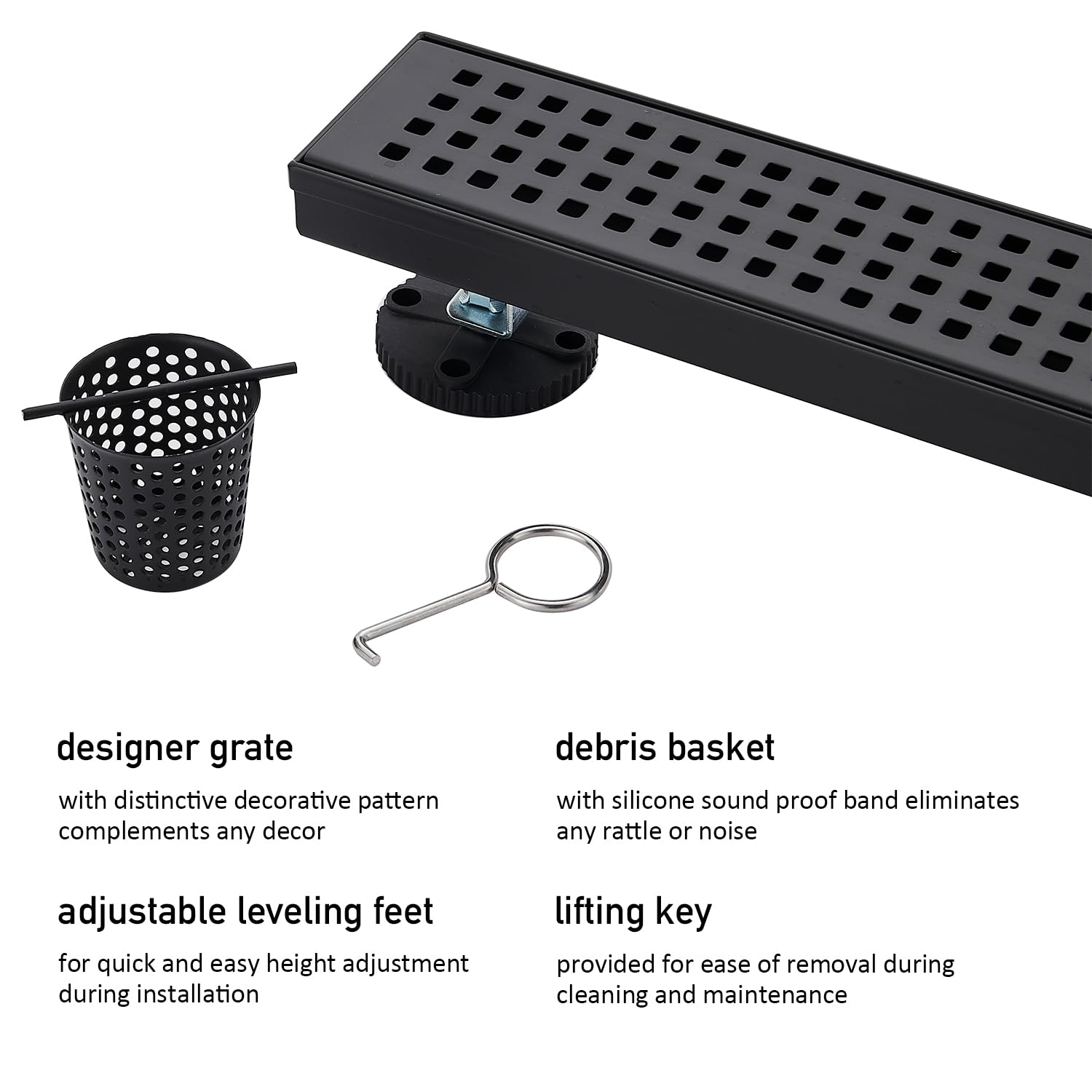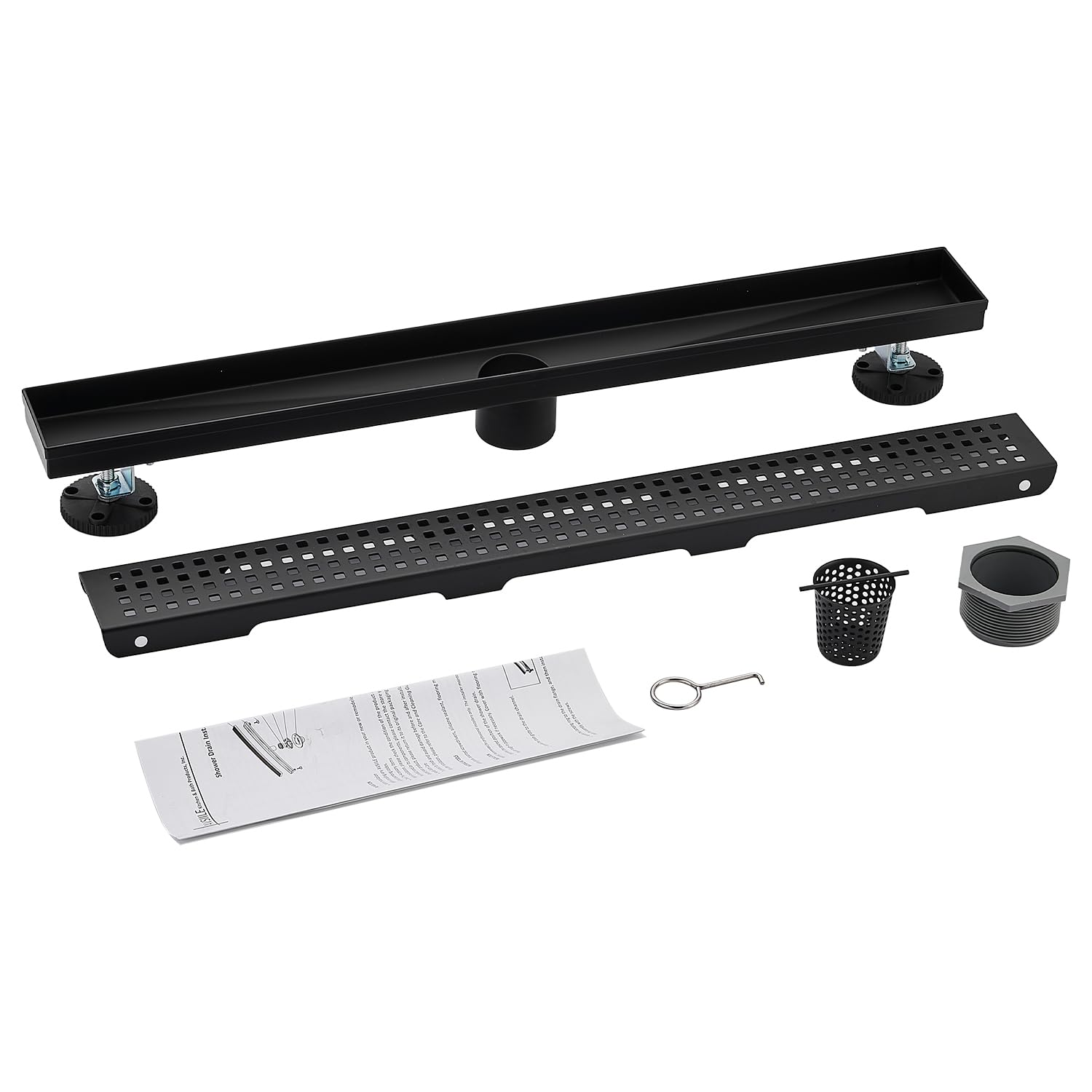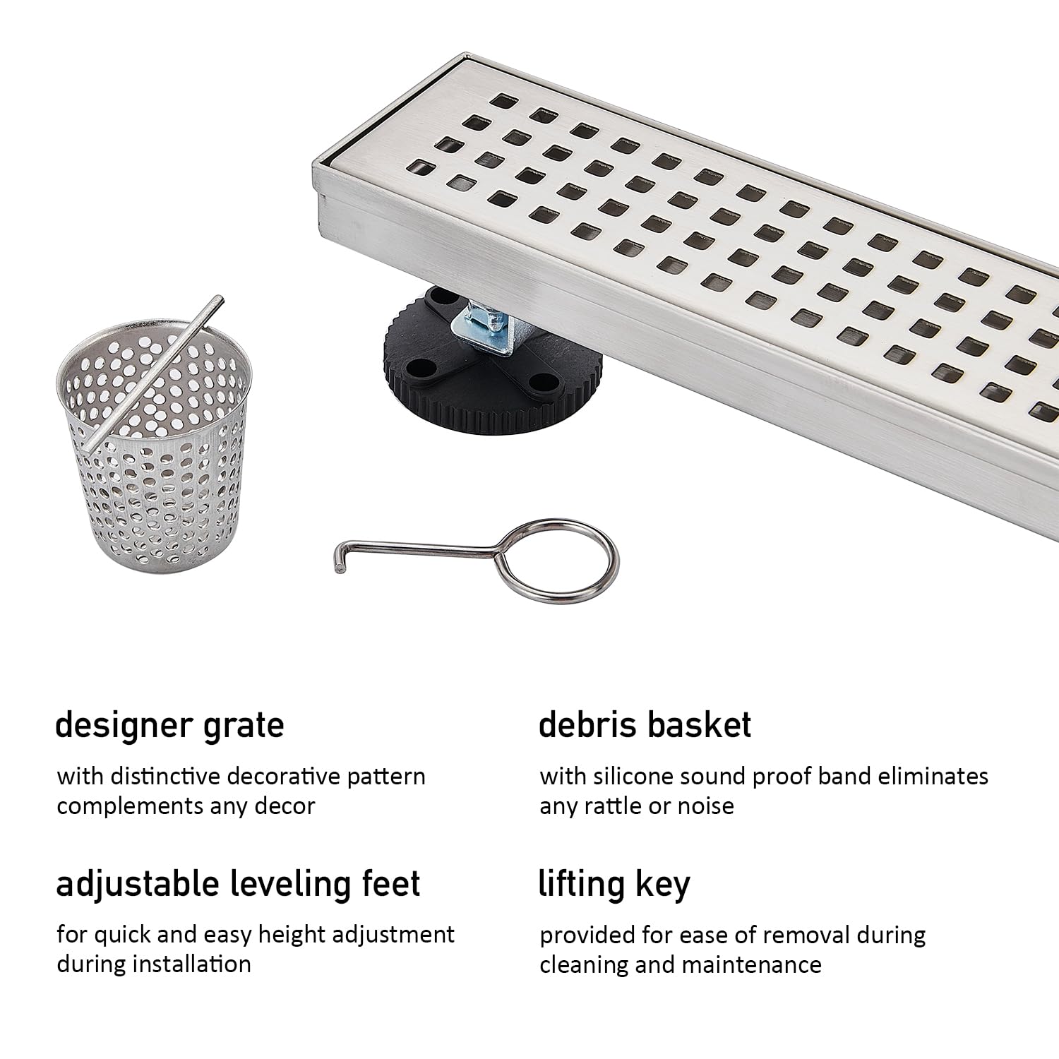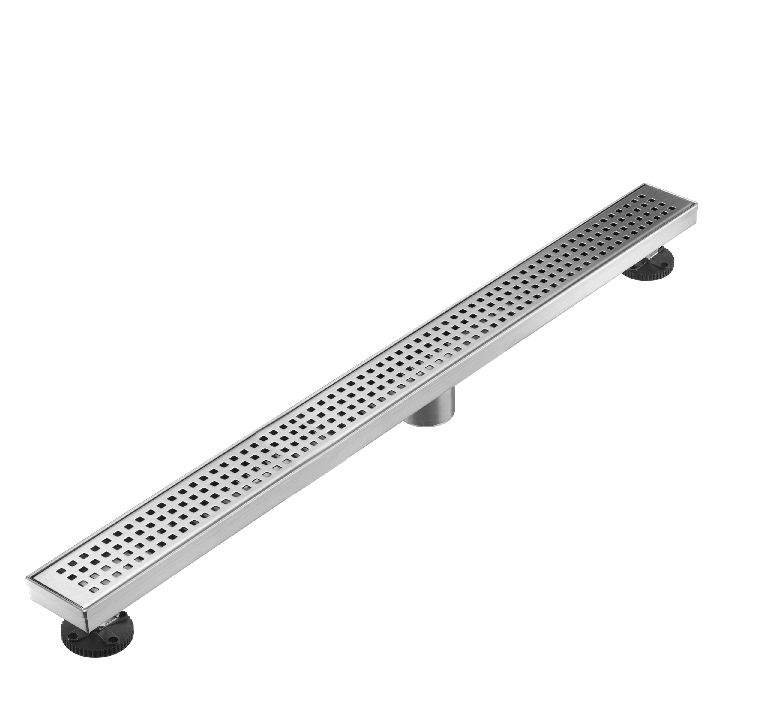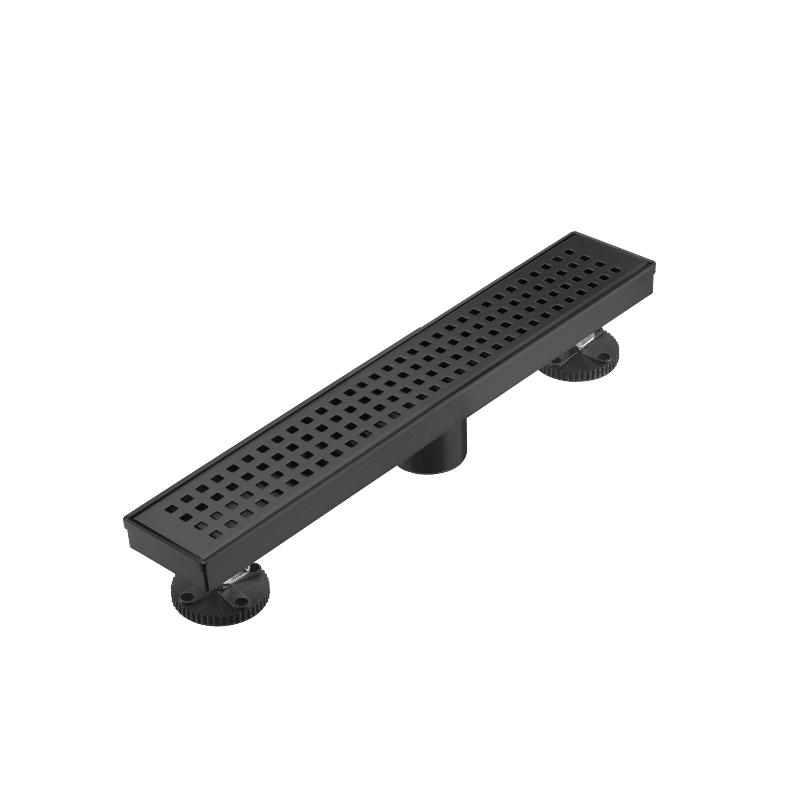 Linear Shower Floor Drain, Brushed Gold 12 Inch 304 Stainless Steel Bathroom Drains Kit, Long Rectangular Shower Trench Drain with Square Pattern Drain Cover & Hair Catcher