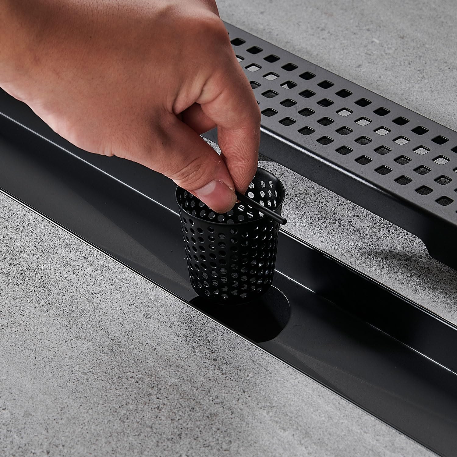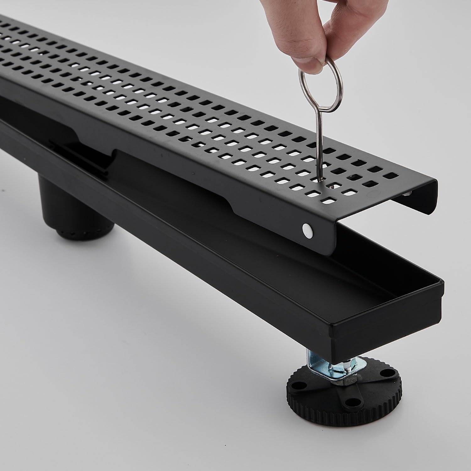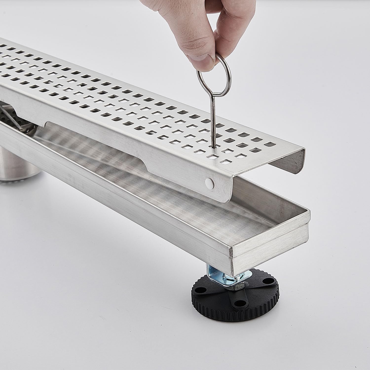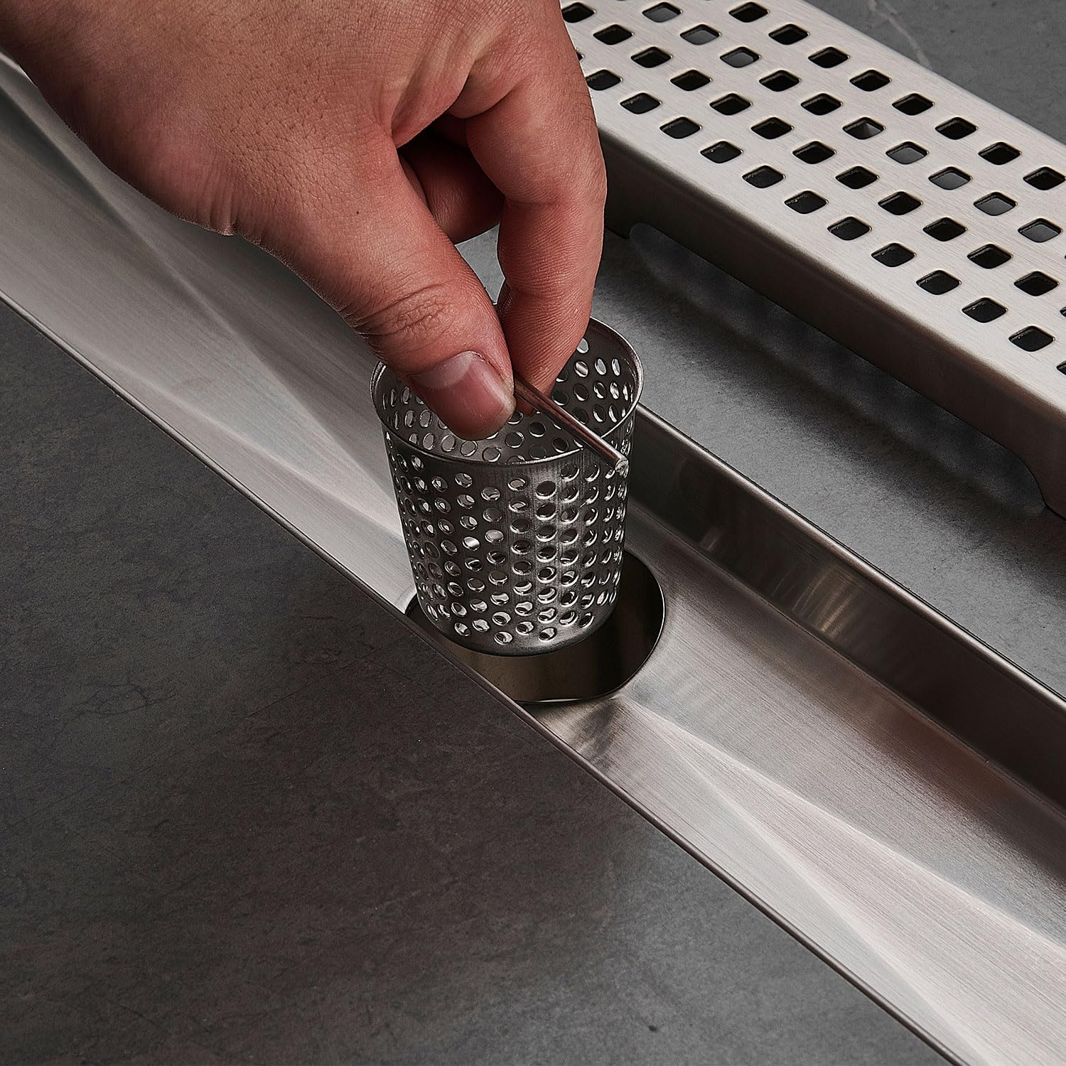 Linear Shower Floor Drain, Brushed Gold 12 Inch 304 Stainless Steel Bathroom Drains Kit, Long Rectangular Shower Trench Drain with Square Pattern Drain Cover & Hair Catcher