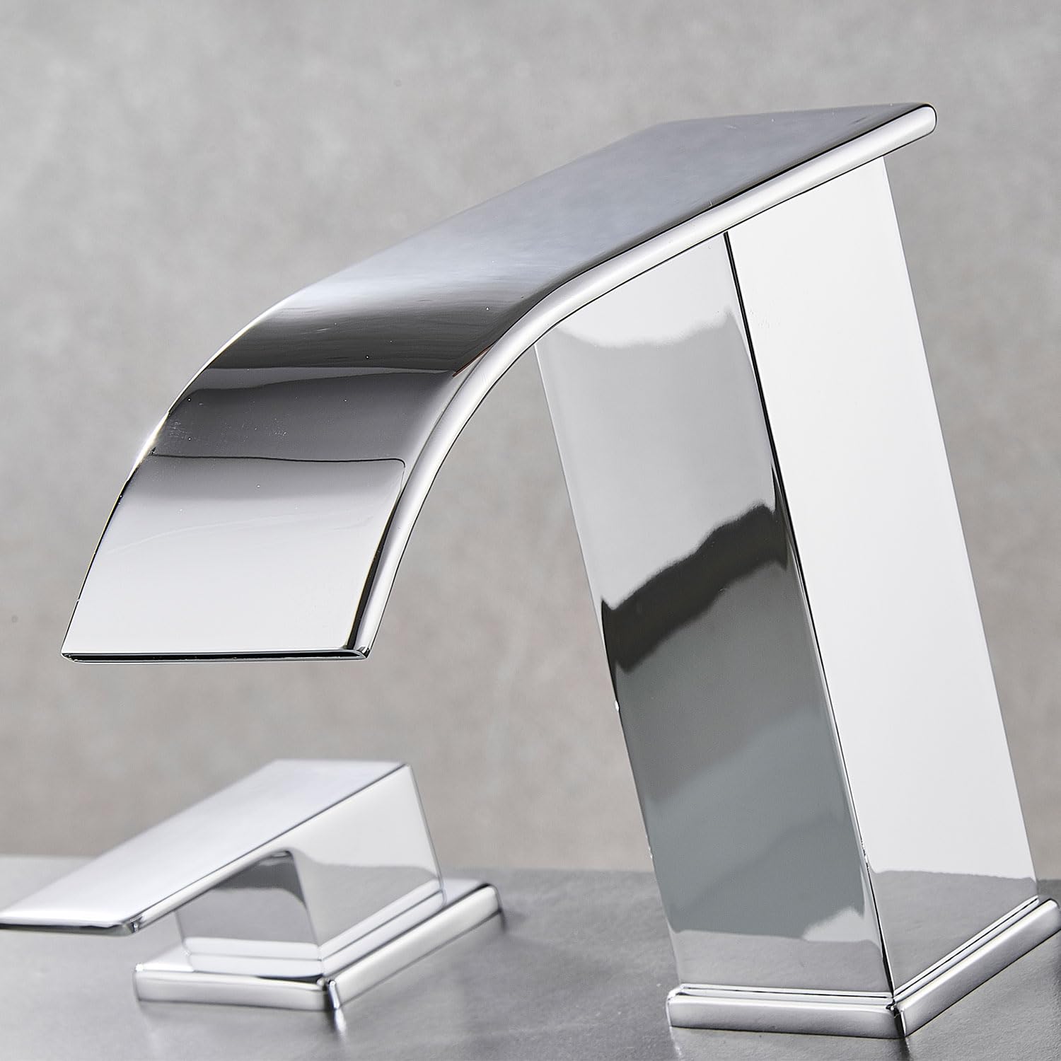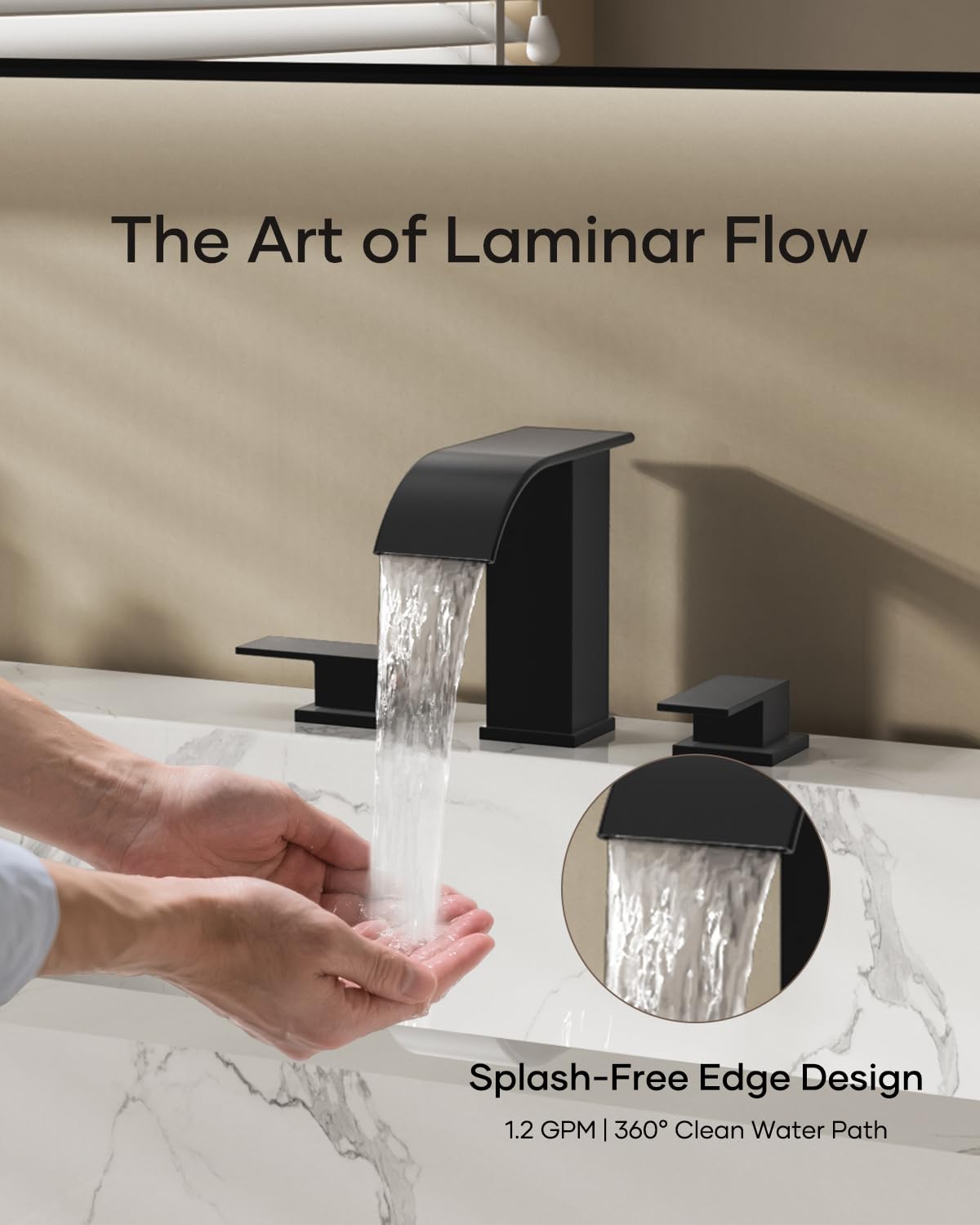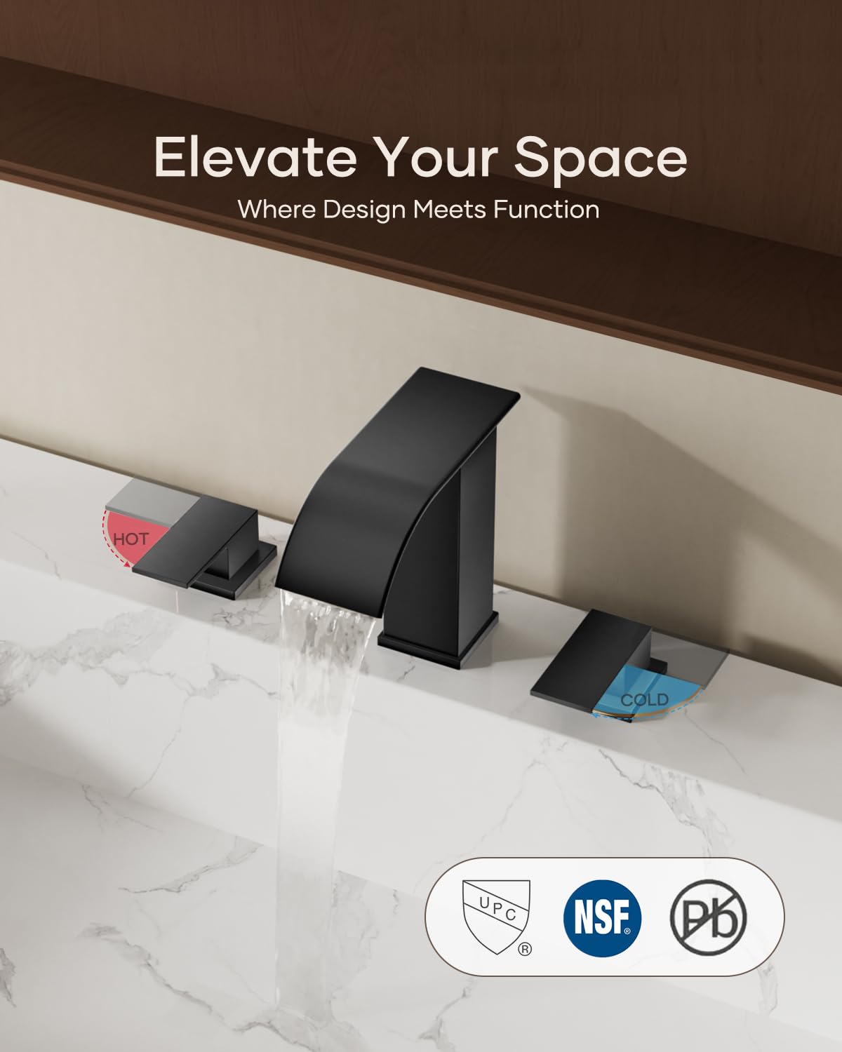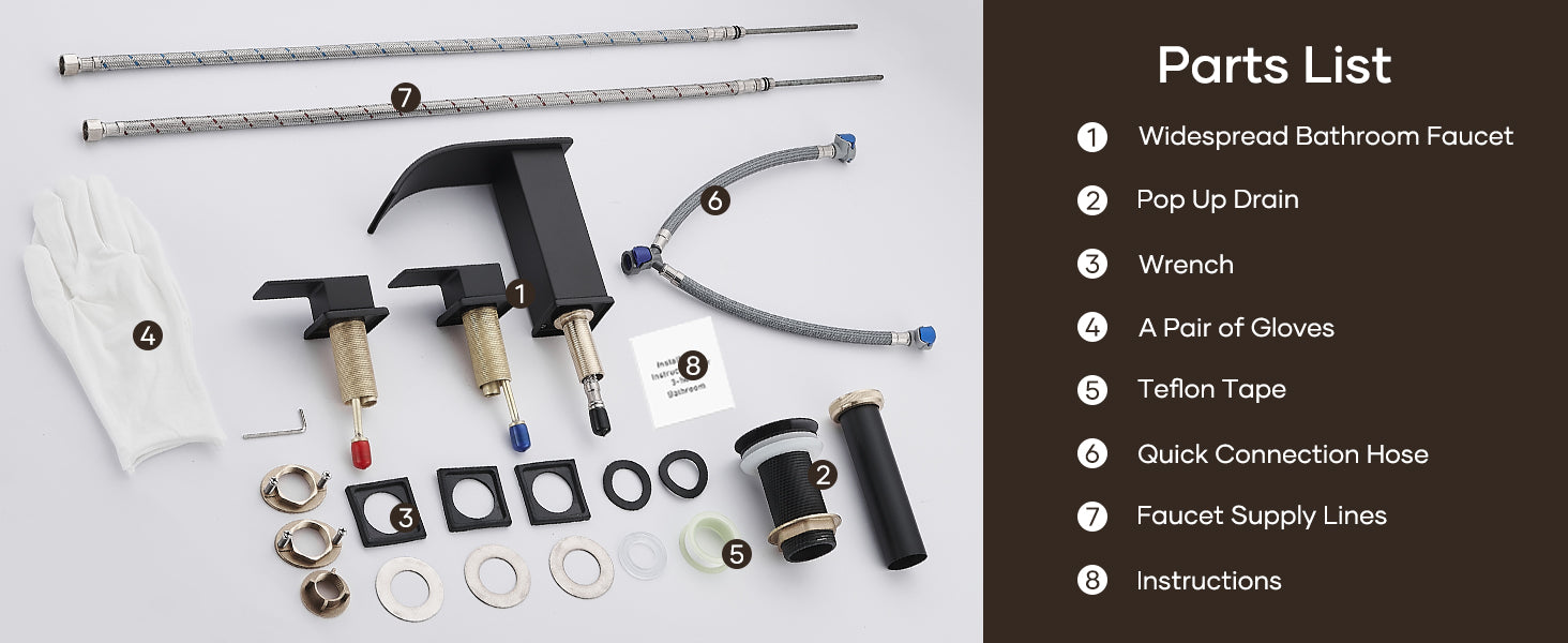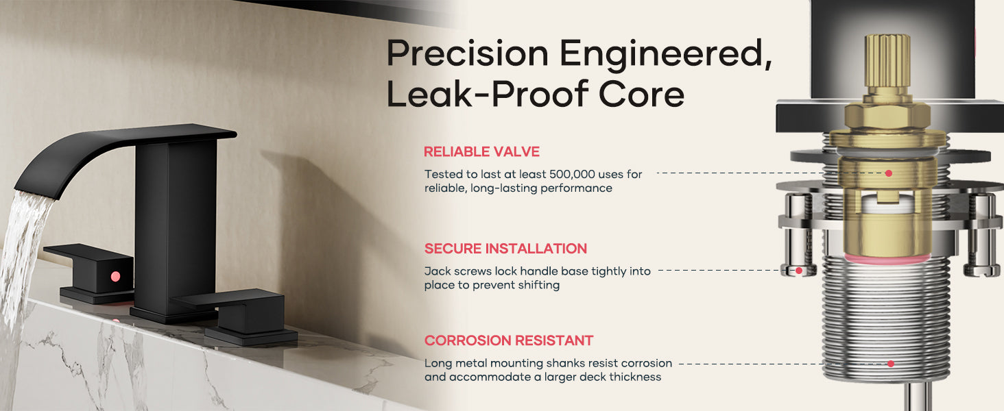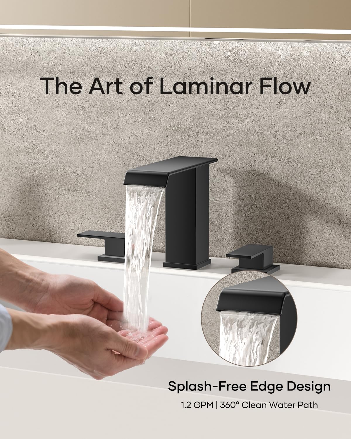 Matte Black Waterfall Bathroom Faucet 3 Hole, 8 Inch Widespread Modern 3 Piece Bathroom Sink Faucet, Touch On Lavatory Faucet for Vanity RV Restroom, Curved Spout