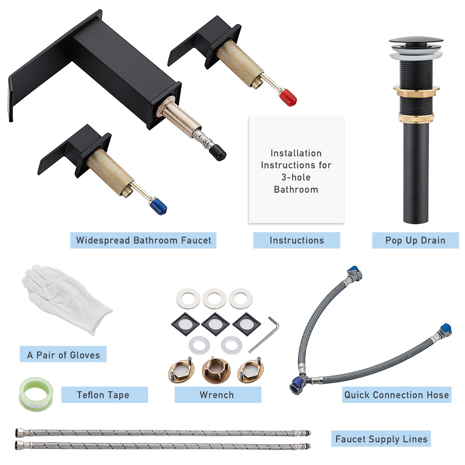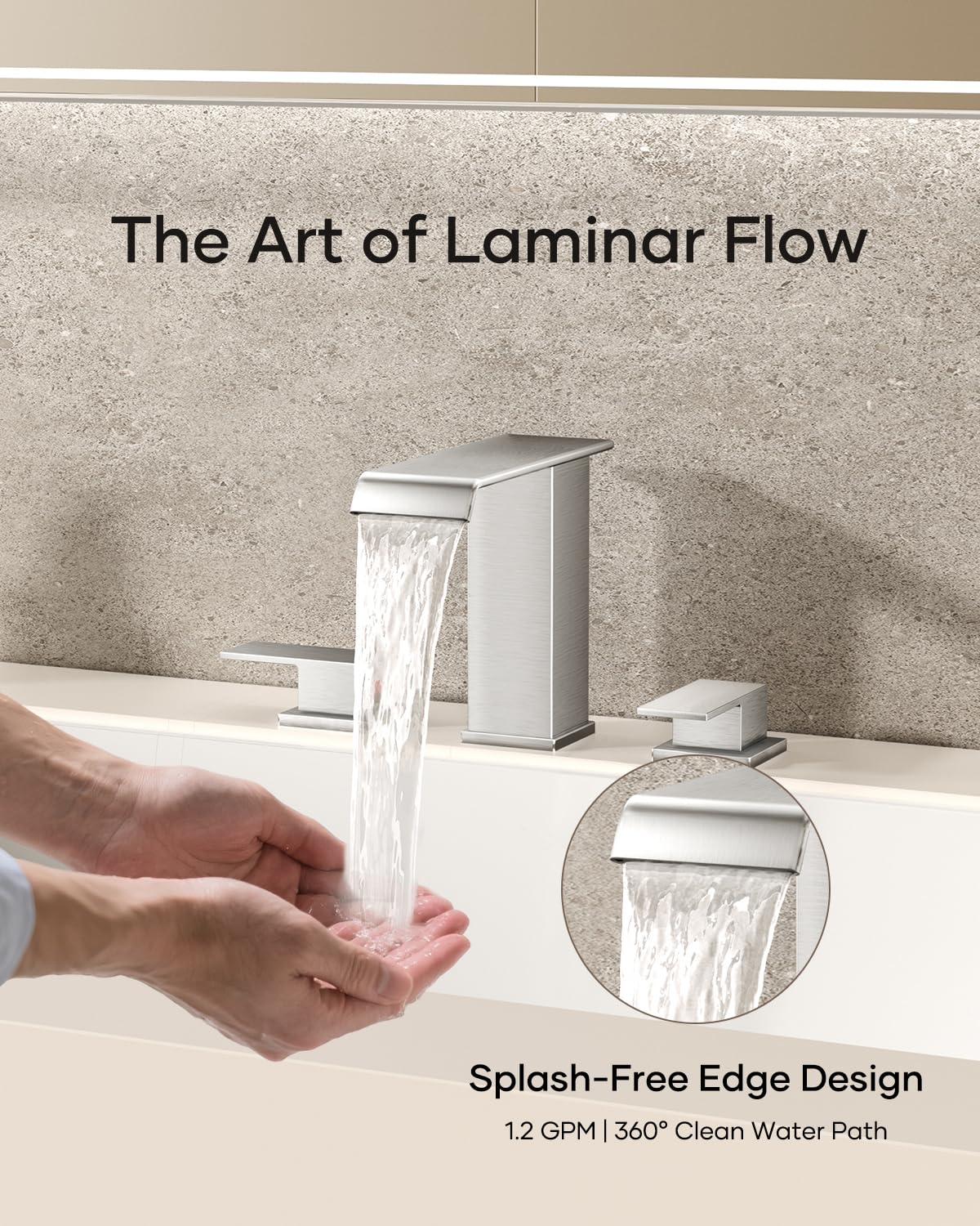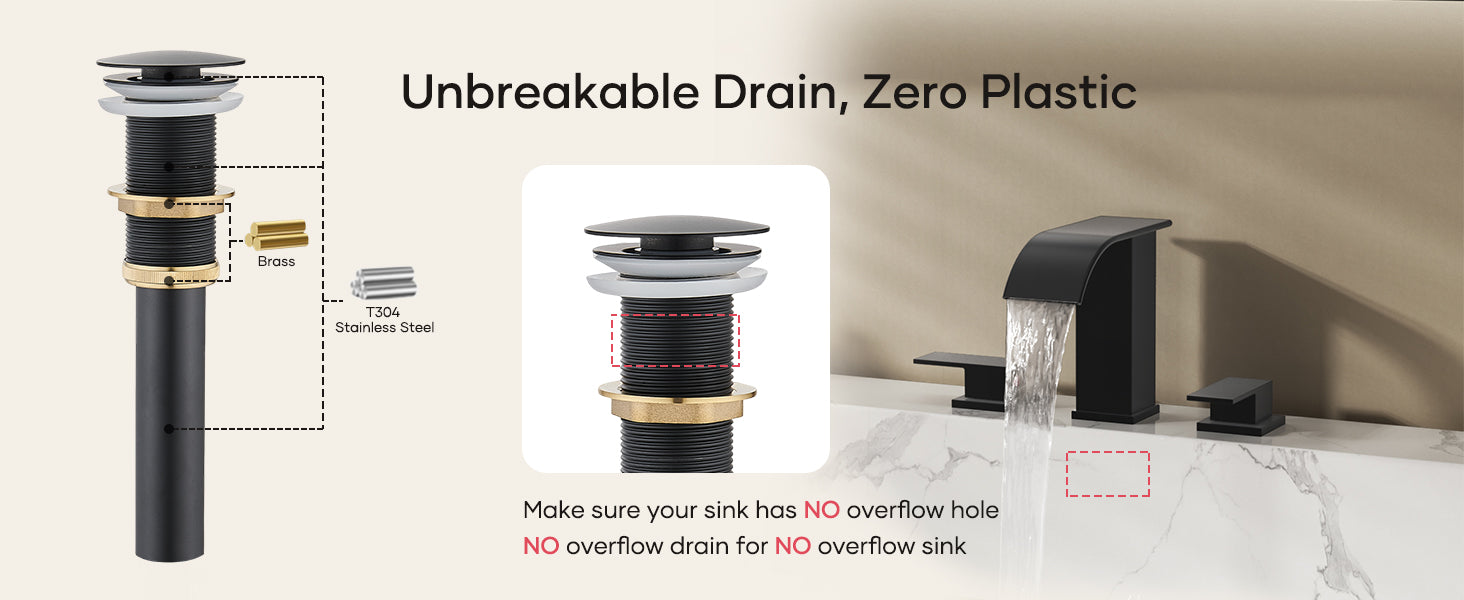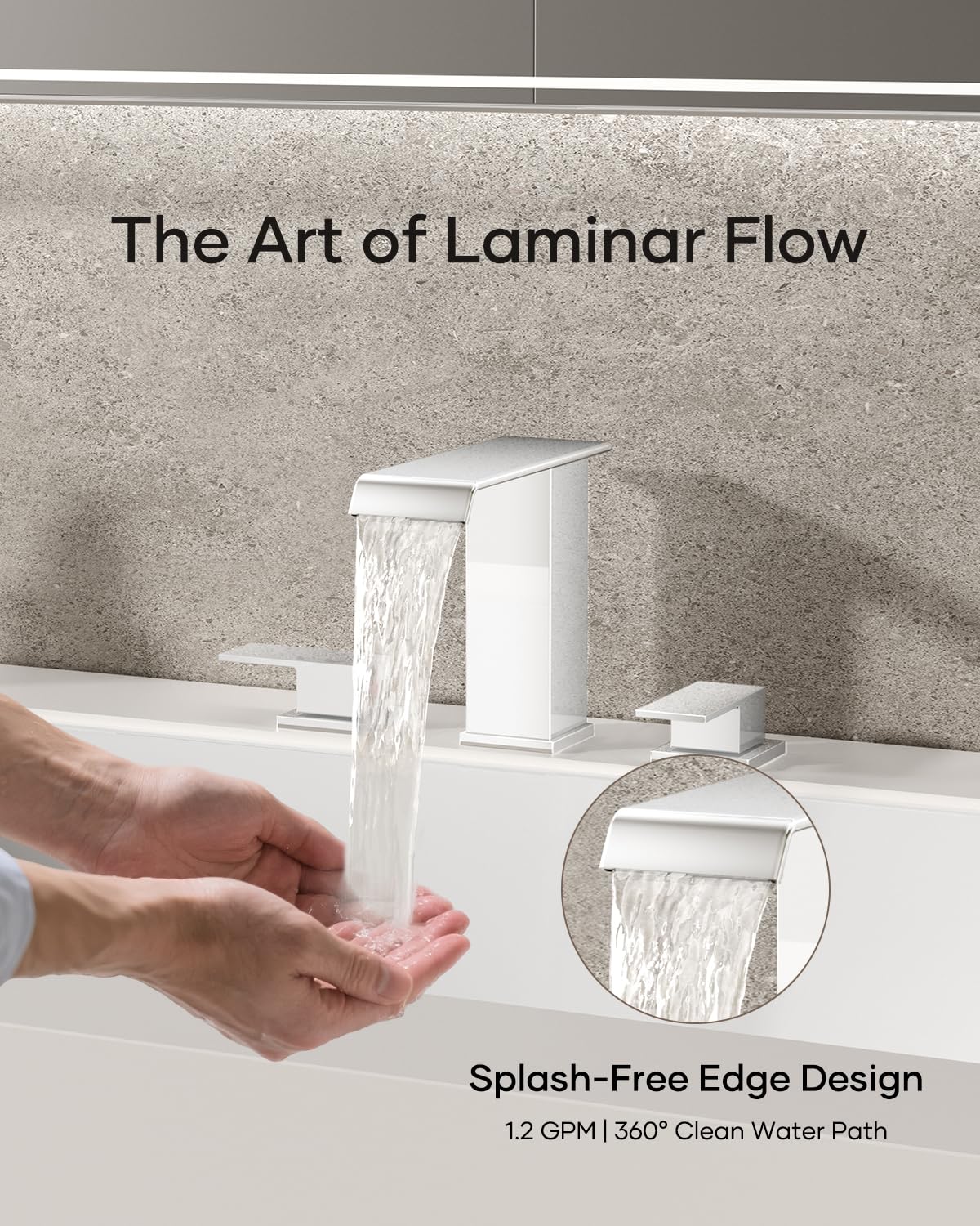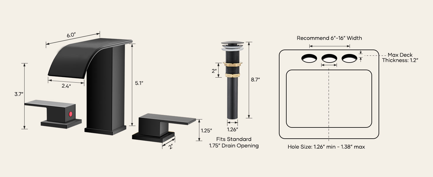 Matte Black Waterfall Bathroom Faucet 3 Hole, 8 Inch Widespread Modern 3 Piece Bathroom Sink Faucet, Touch On Lavatory Faucet for Vanity RV Restroom, Curved Spout