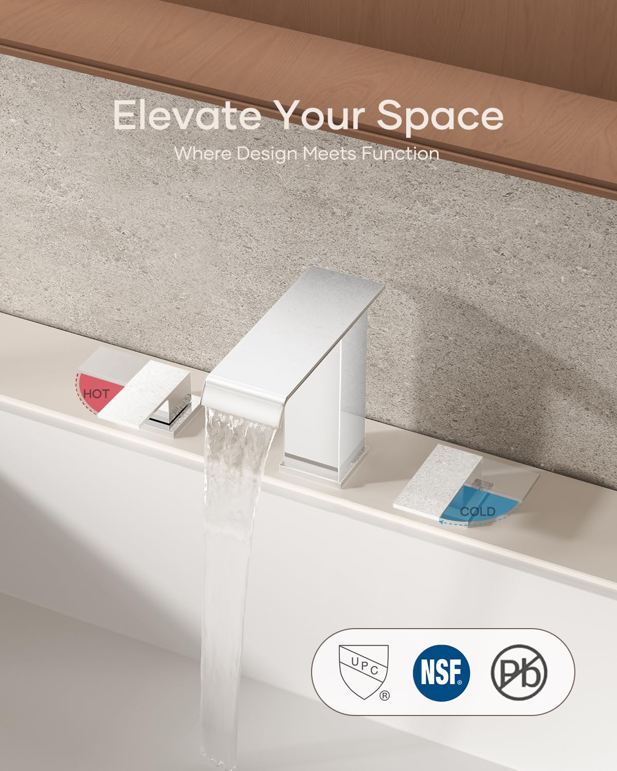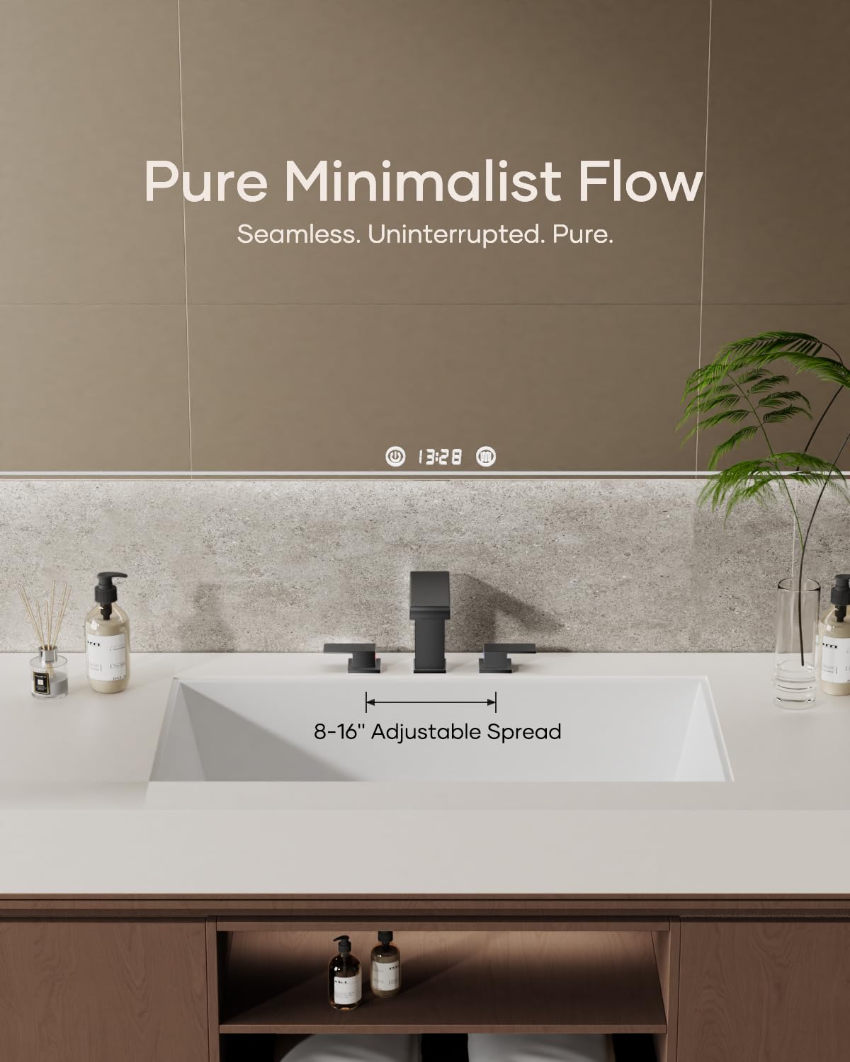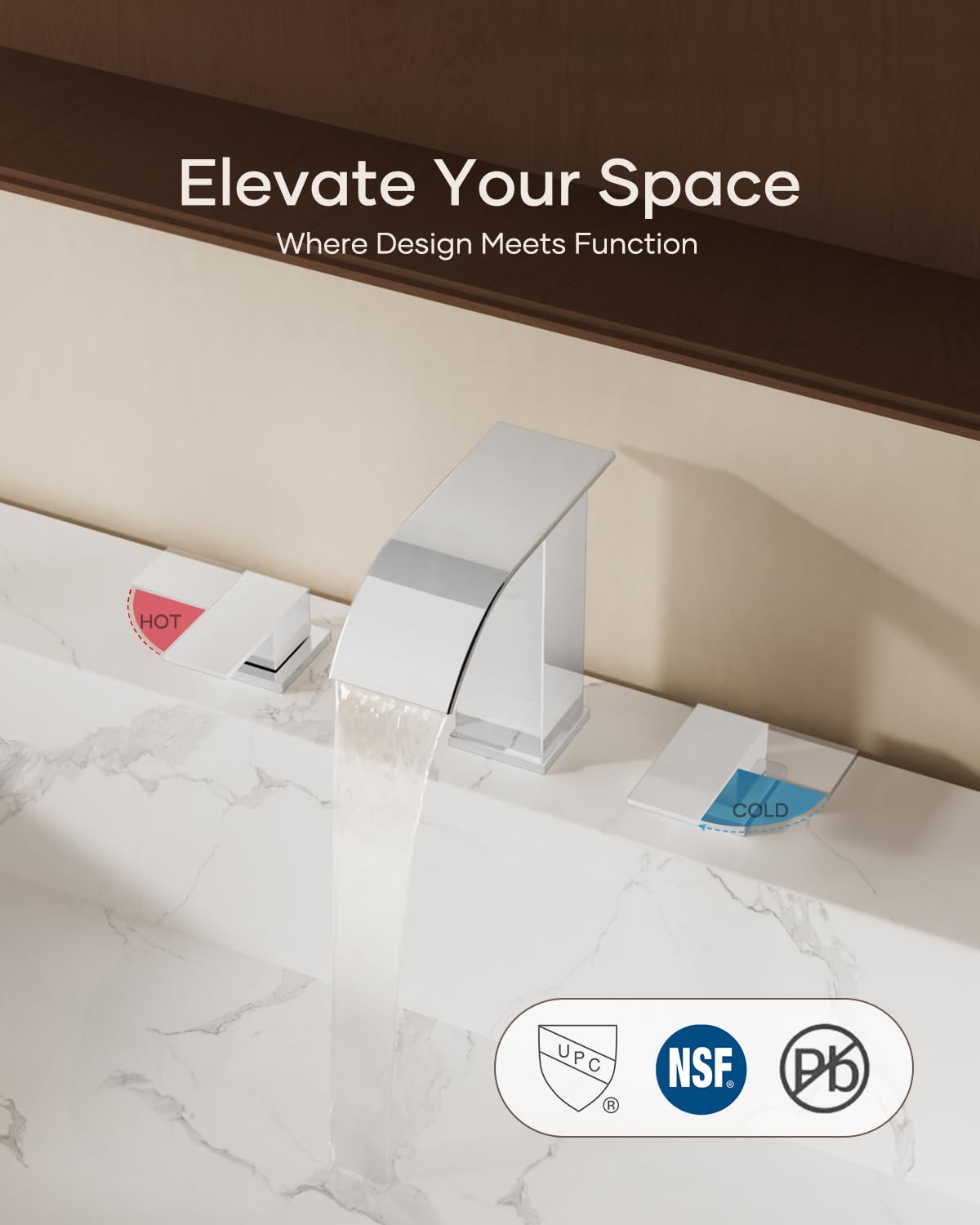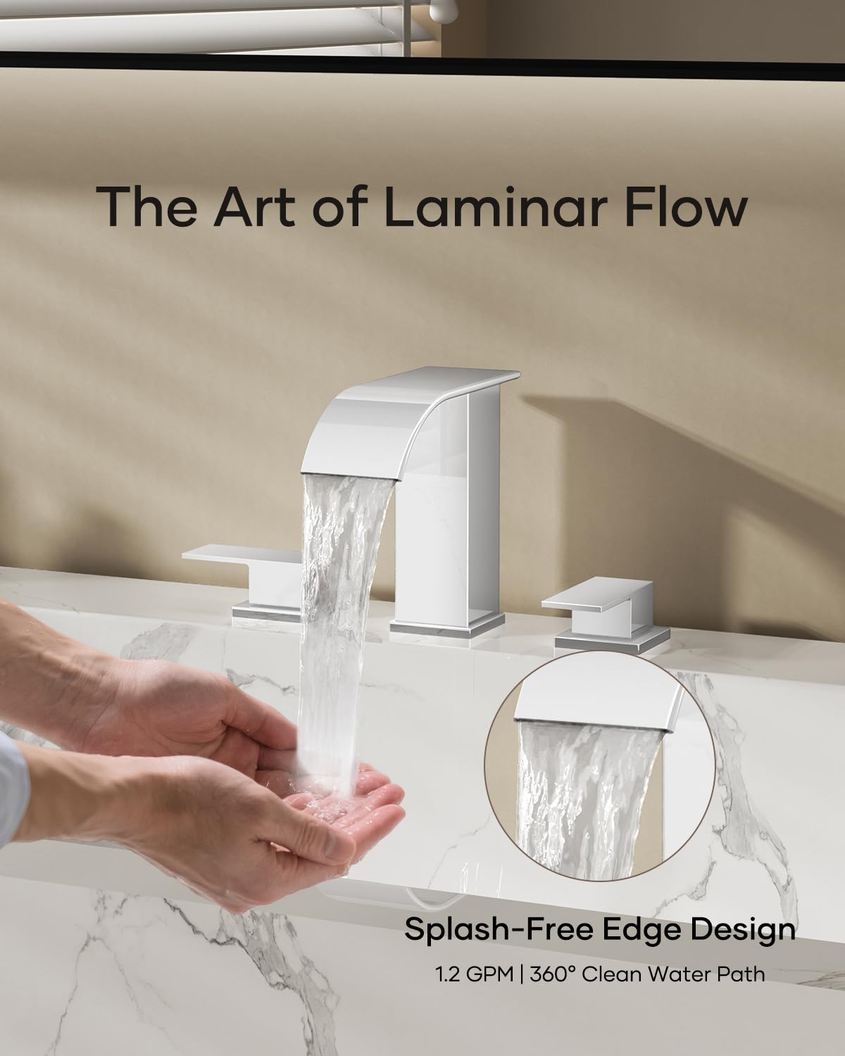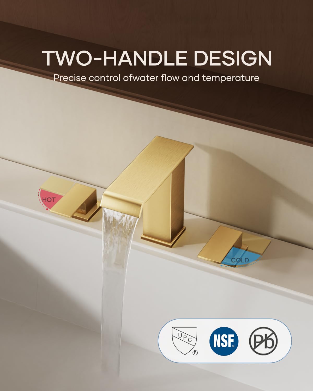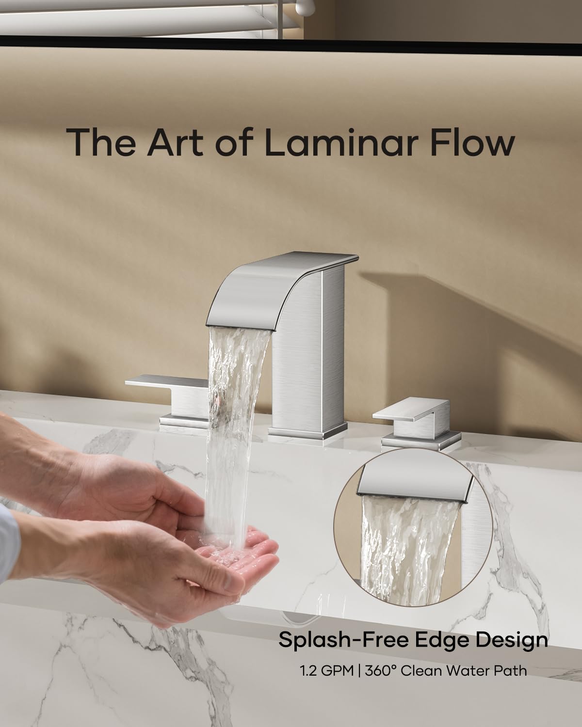 Matte Black Waterfall Bathroom Faucet 3 Hole, 8 Inch Widespread Modern 3 Piece Bathroom Sink Faucet, Touch On Lavatory Faucet for Vanity RV Restroom, Curved Spout
