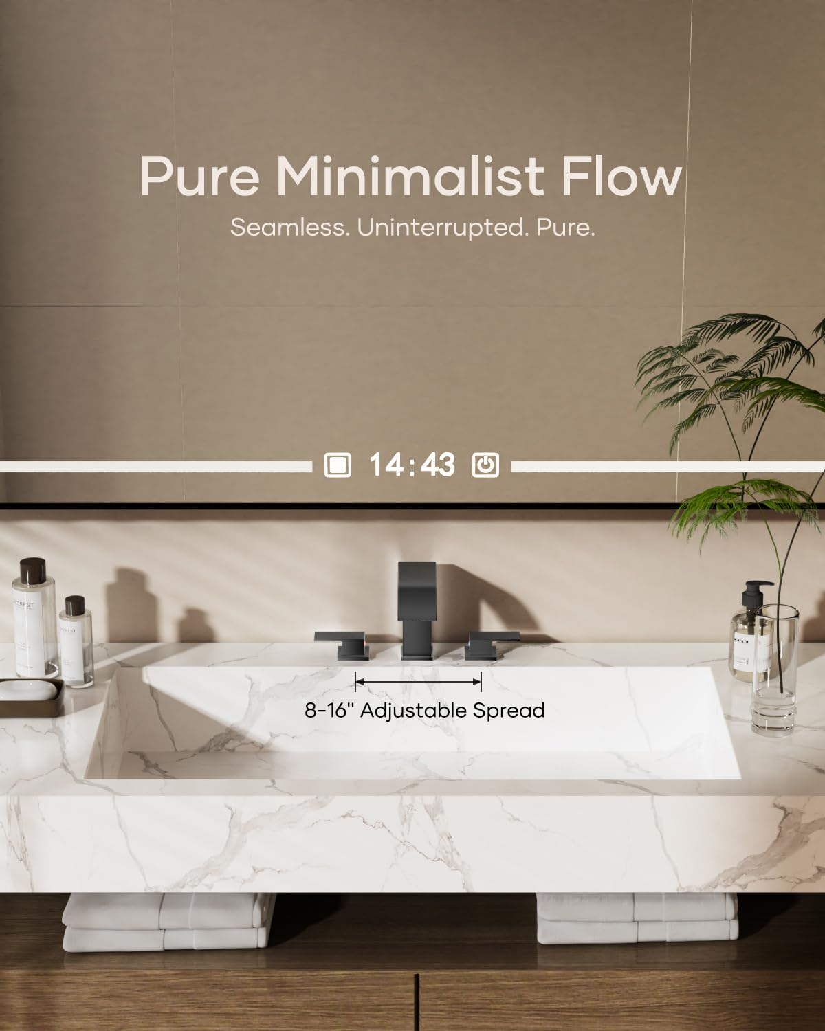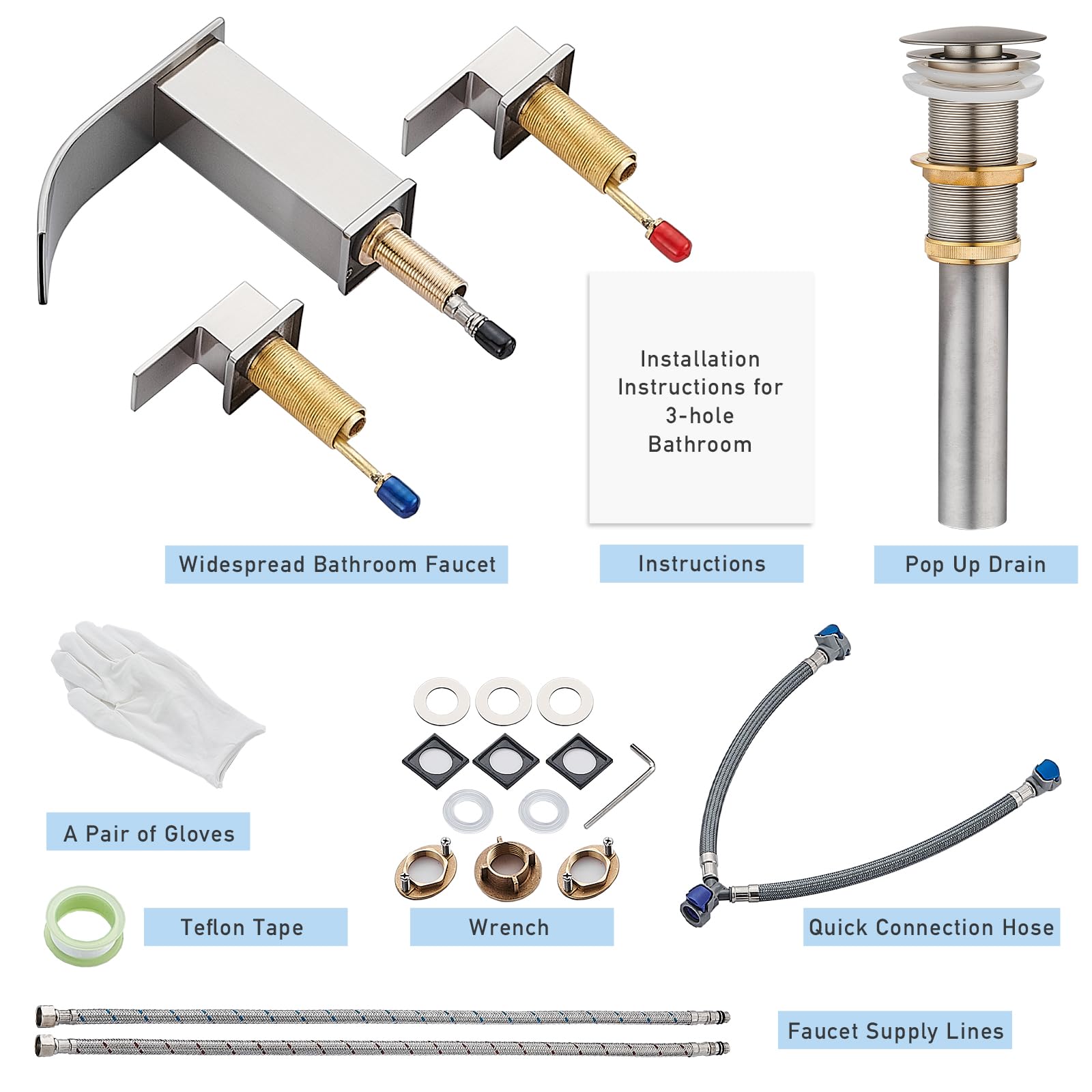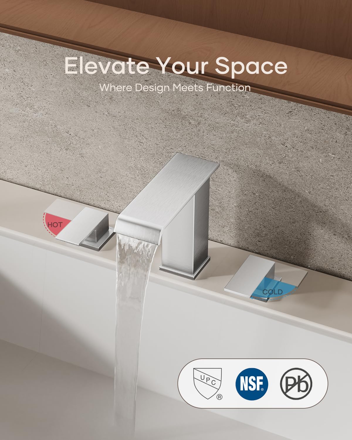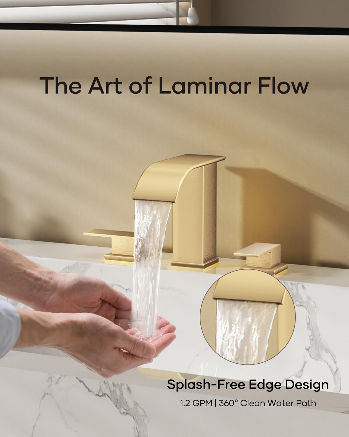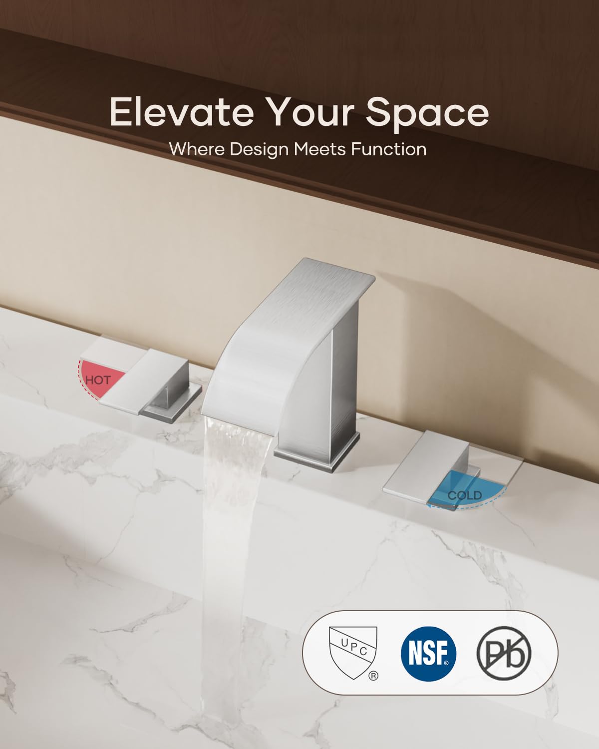 Matte Black Waterfall Bathroom Faucet 3 Hole, 8 Inch Widespread Modern 3 Piece Bathroom Sink Faucet, Touch On Lavatory Faucet for Vanity RV Restroom, Curved Spout