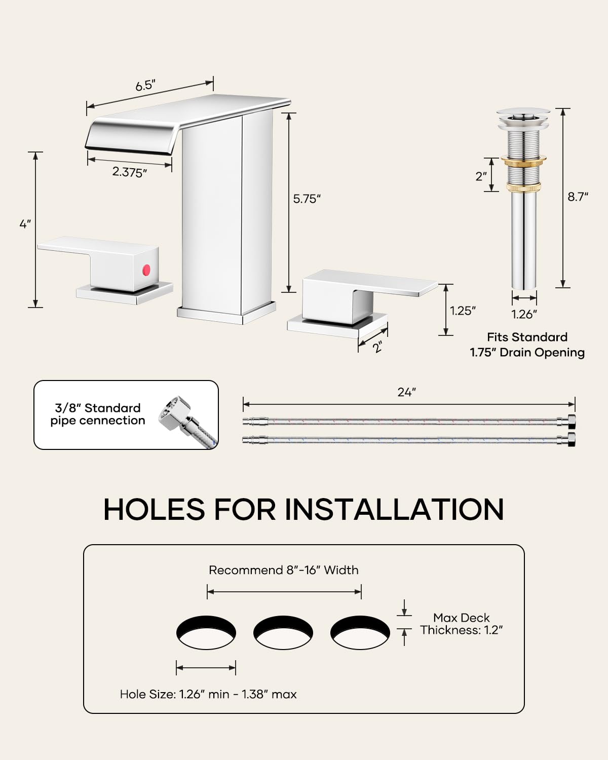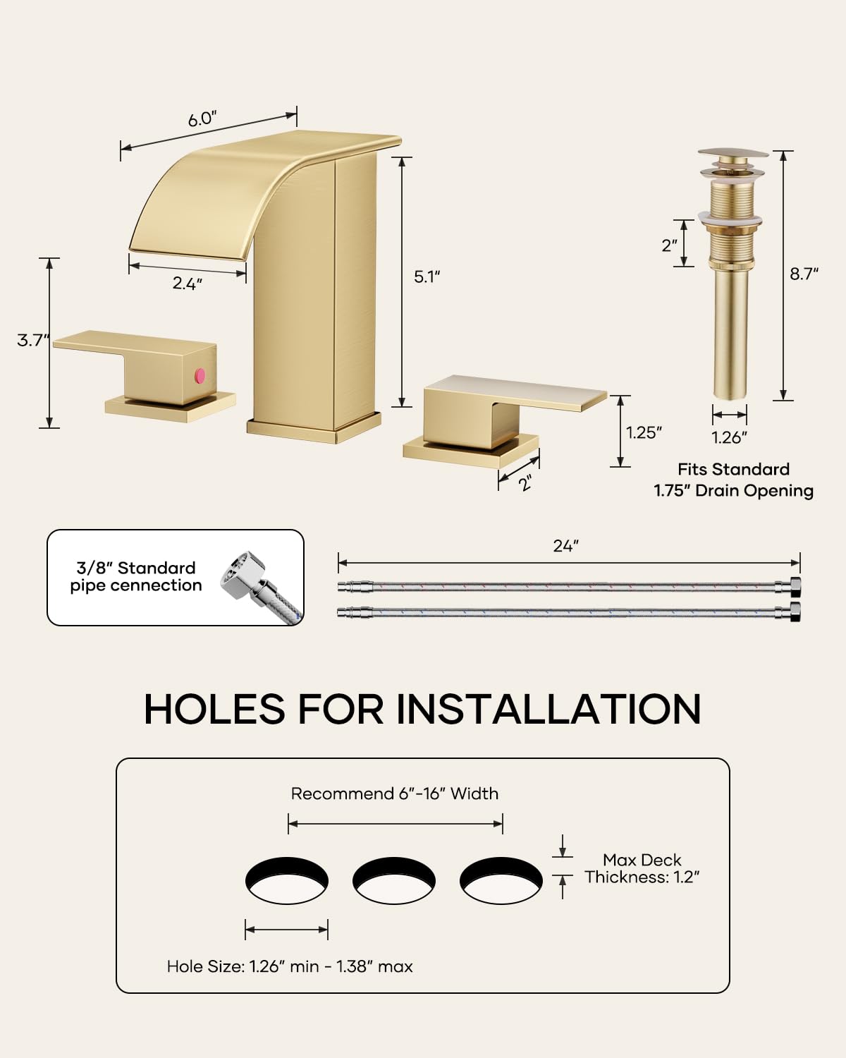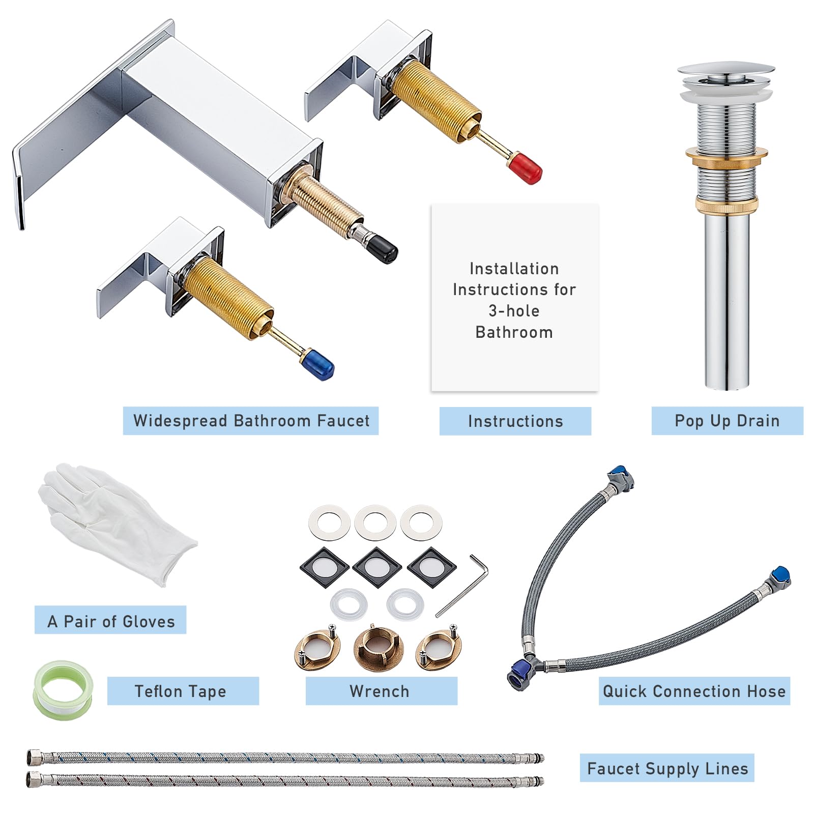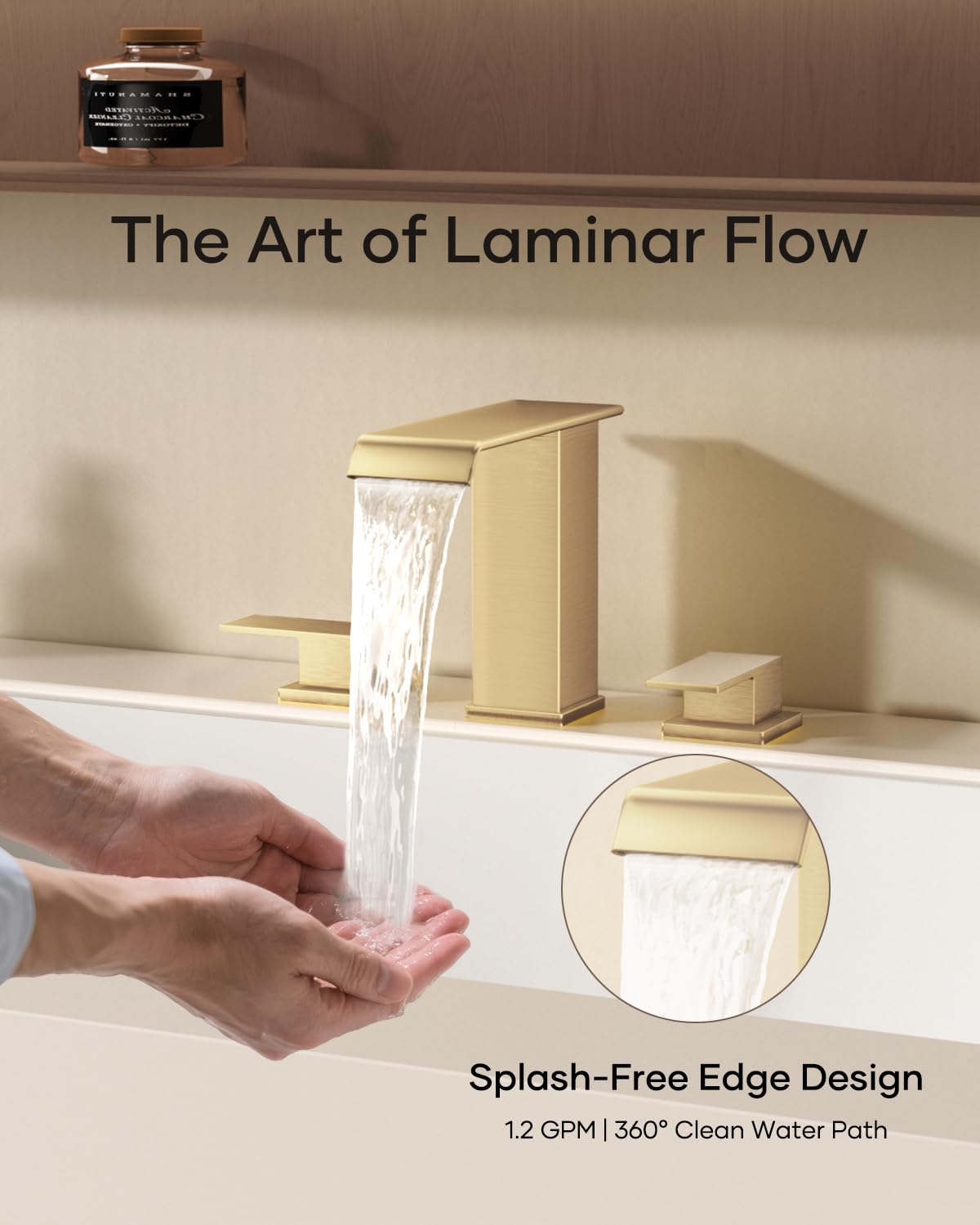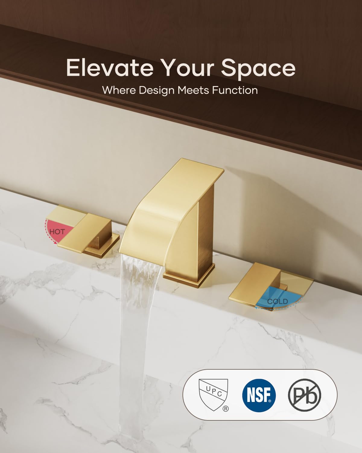Matte Black Waterfall Bathroom Faucet 3 Hole, 8 Inch Widespread Modern 3 Piece Bathroom Sink Faucet, Touch On Lavatory Faucet for Vanity RV Restroom, Curved Spout