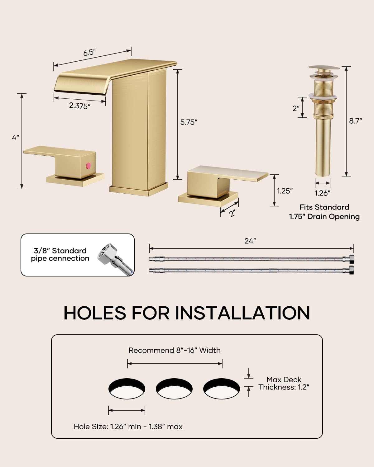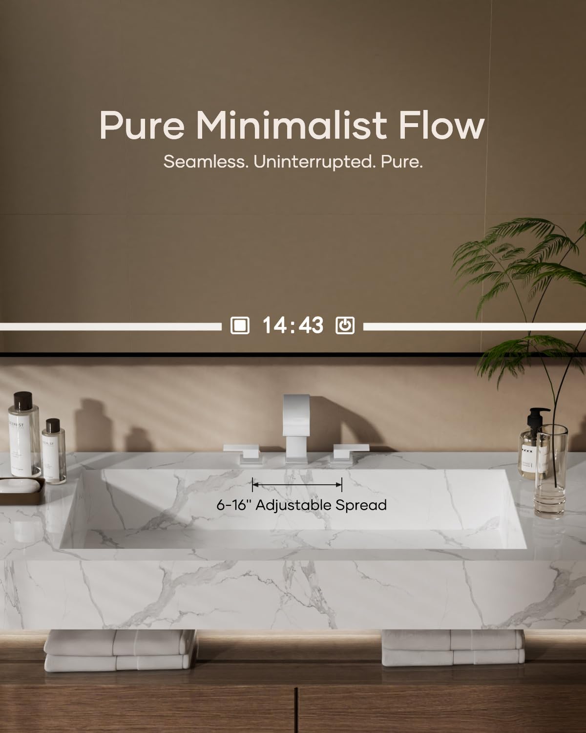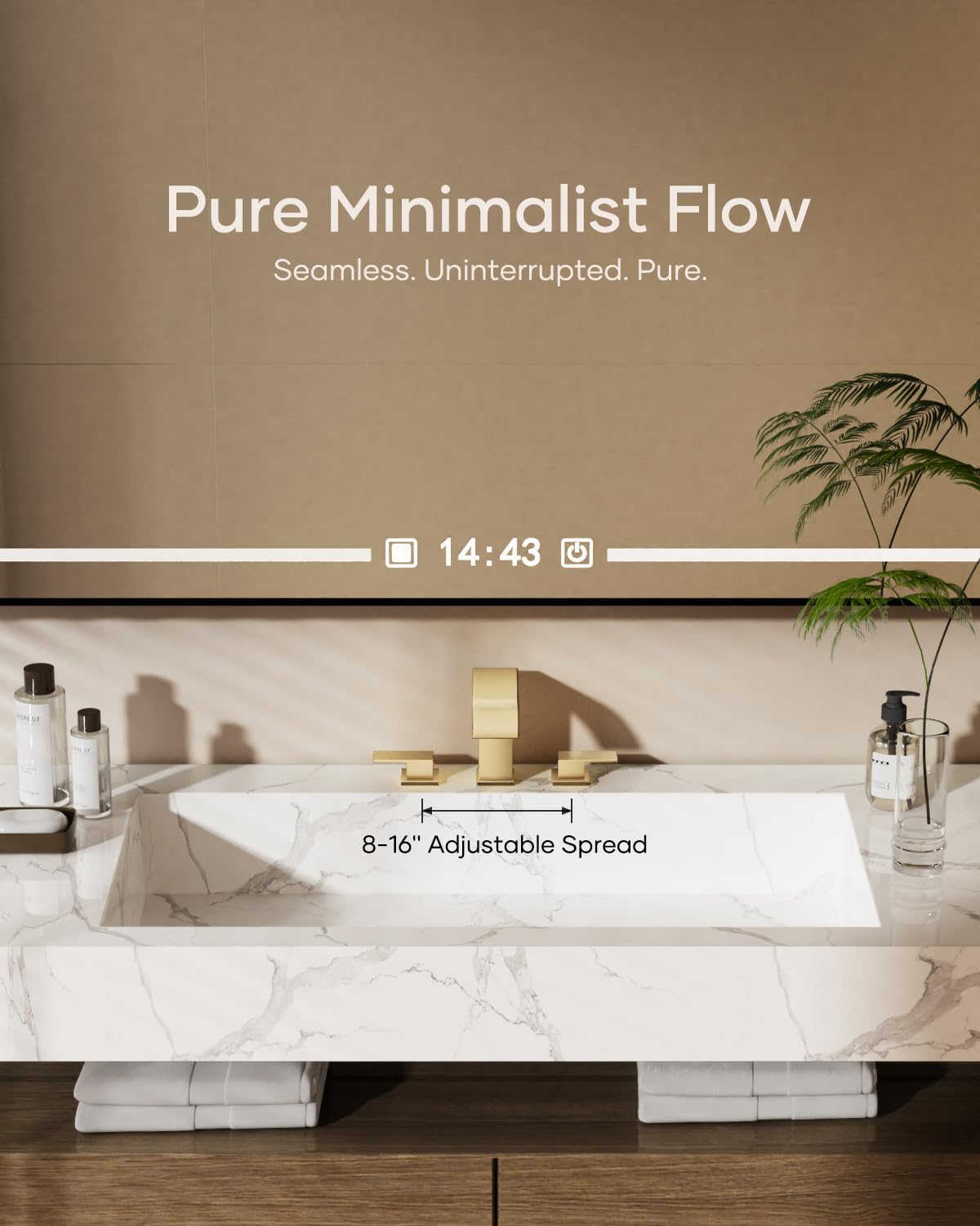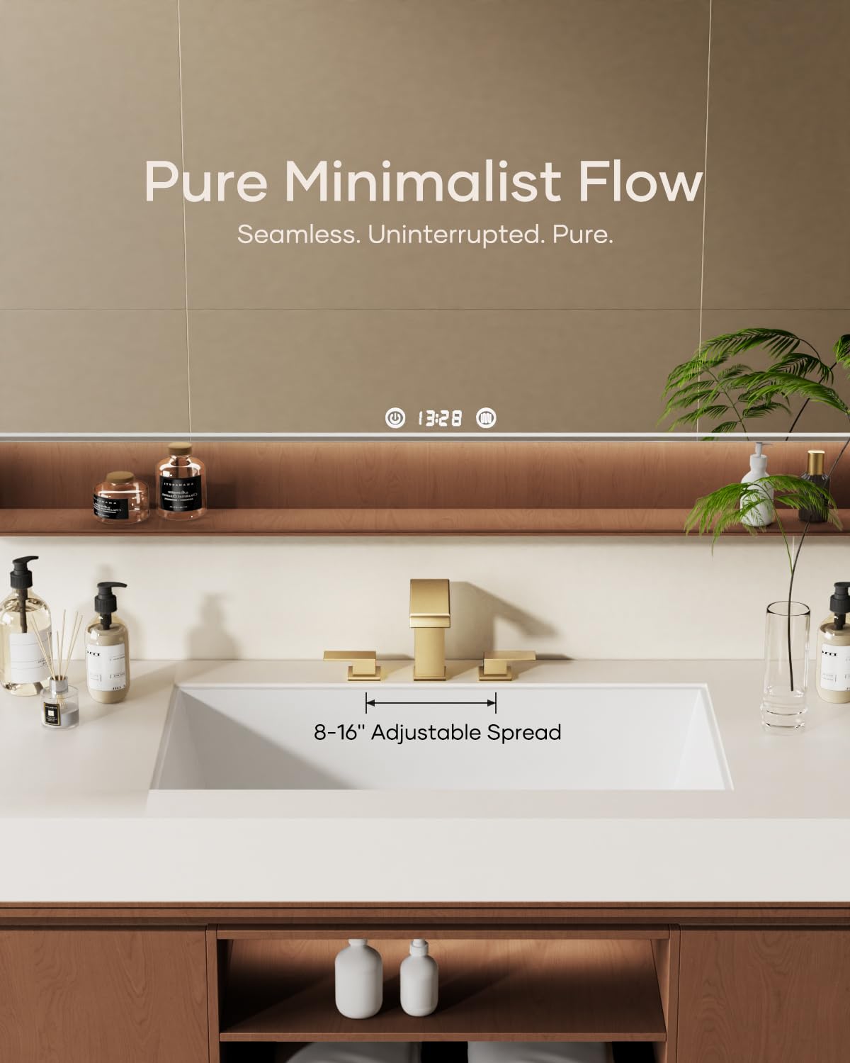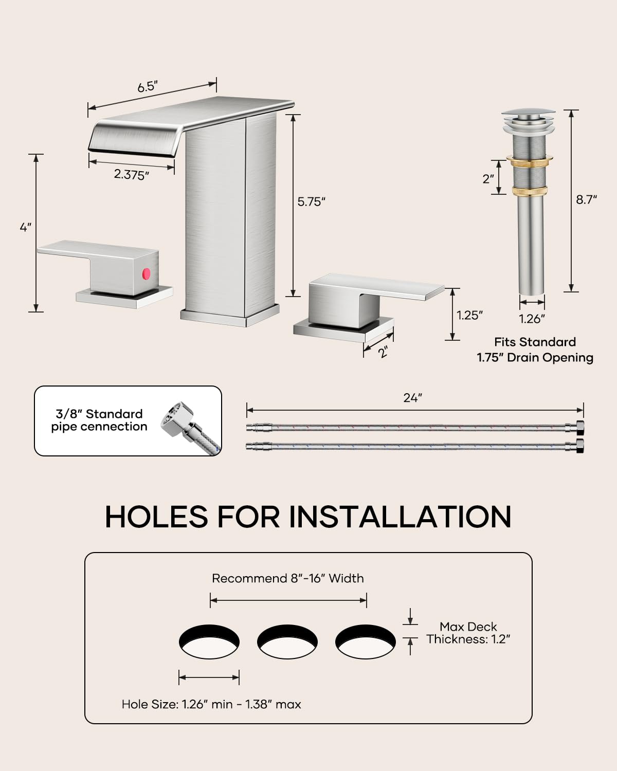 Matte Black Waterfall Bathroom Faucet 3 Hole, 8 Inch Widespread Modern 3 Piece Bathroom Sink Faucet, Touch On Lavatory Faucet for Vanity RV Restroom, Curved Spout